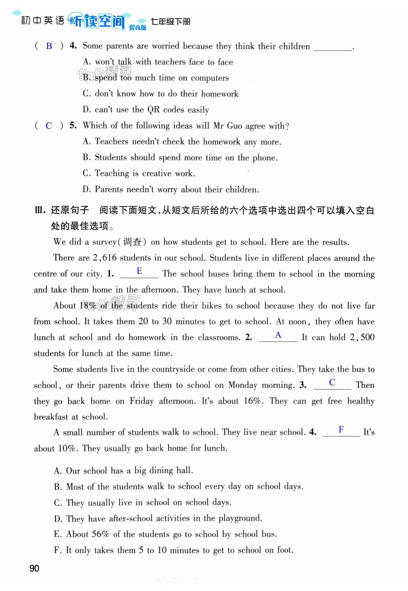 注:目前有些书本章节名称可能整理的还不是很完善,但都是按照顺序排列的,请同学们按照顺序仔细查找。练习册 2024年初中英语听读空间七年级下册译林版提高版 答案主要是用来给同学们做完题方便对答案用的,请勿直接抄袭。