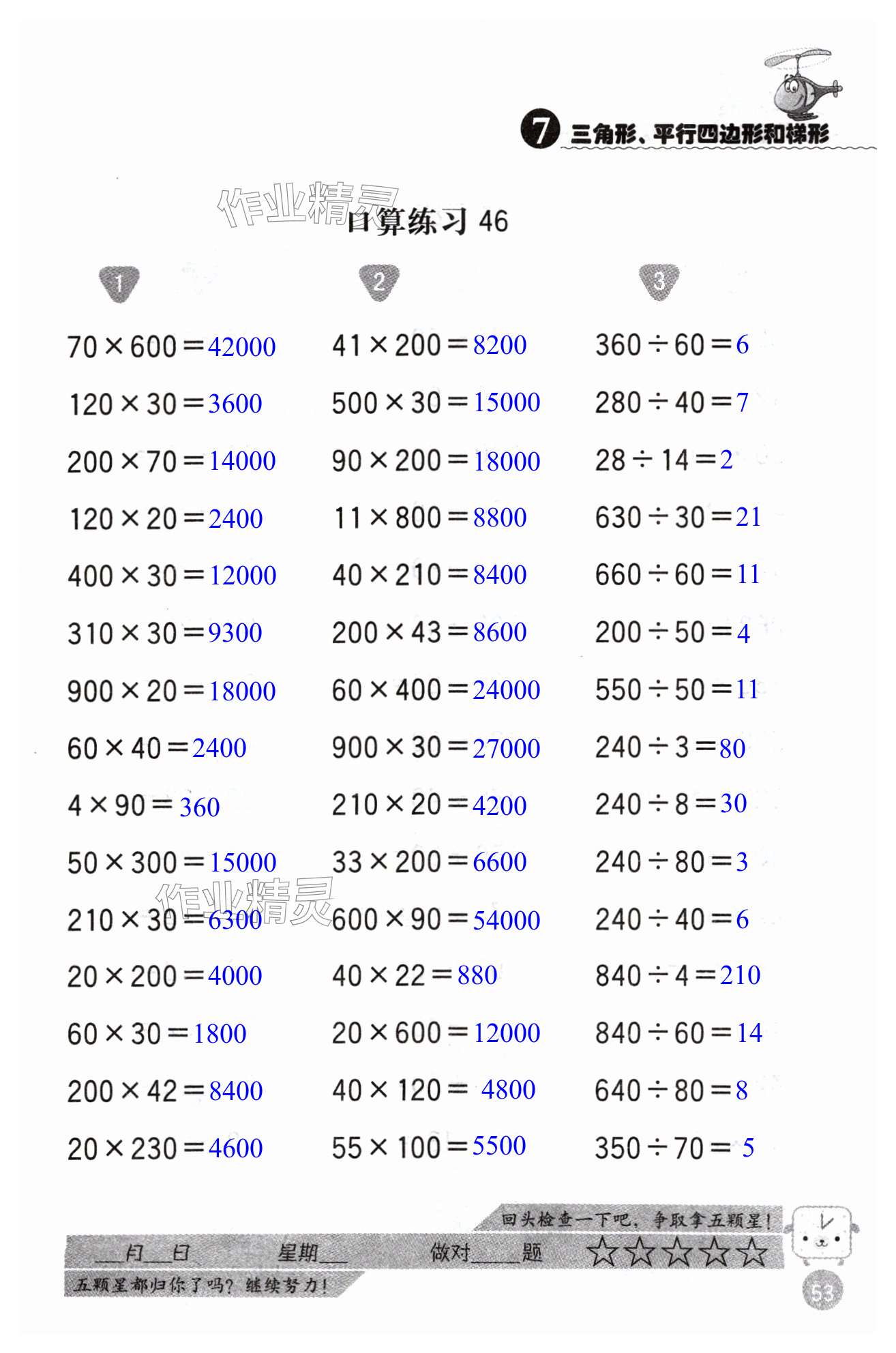 注:目前有些书本章节名称可能整理的还不是很完善,但都是按照顺序排列的,请同学们按照顺序仔细查找。练习册 2024年灵机一动口算心算四年级数学下册苏教版 答案主要是用来给同学们做完题方便对答案用的,请勿直接抄袭。