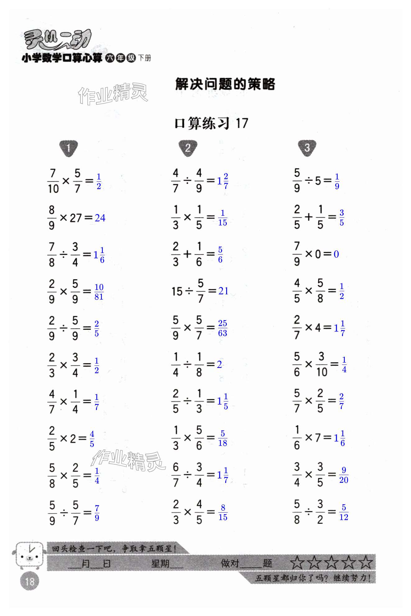 注:目前有些书本章节名称可能整理的还不是很完善,但都是按照顺序排列的,请同学们按照顺序仔细查找。练习册 2024年灵机一动口算心算六年级数学下册苏教版 答案主要是用来给同学们做完题方便对答案用的,请勿直接抄袭。