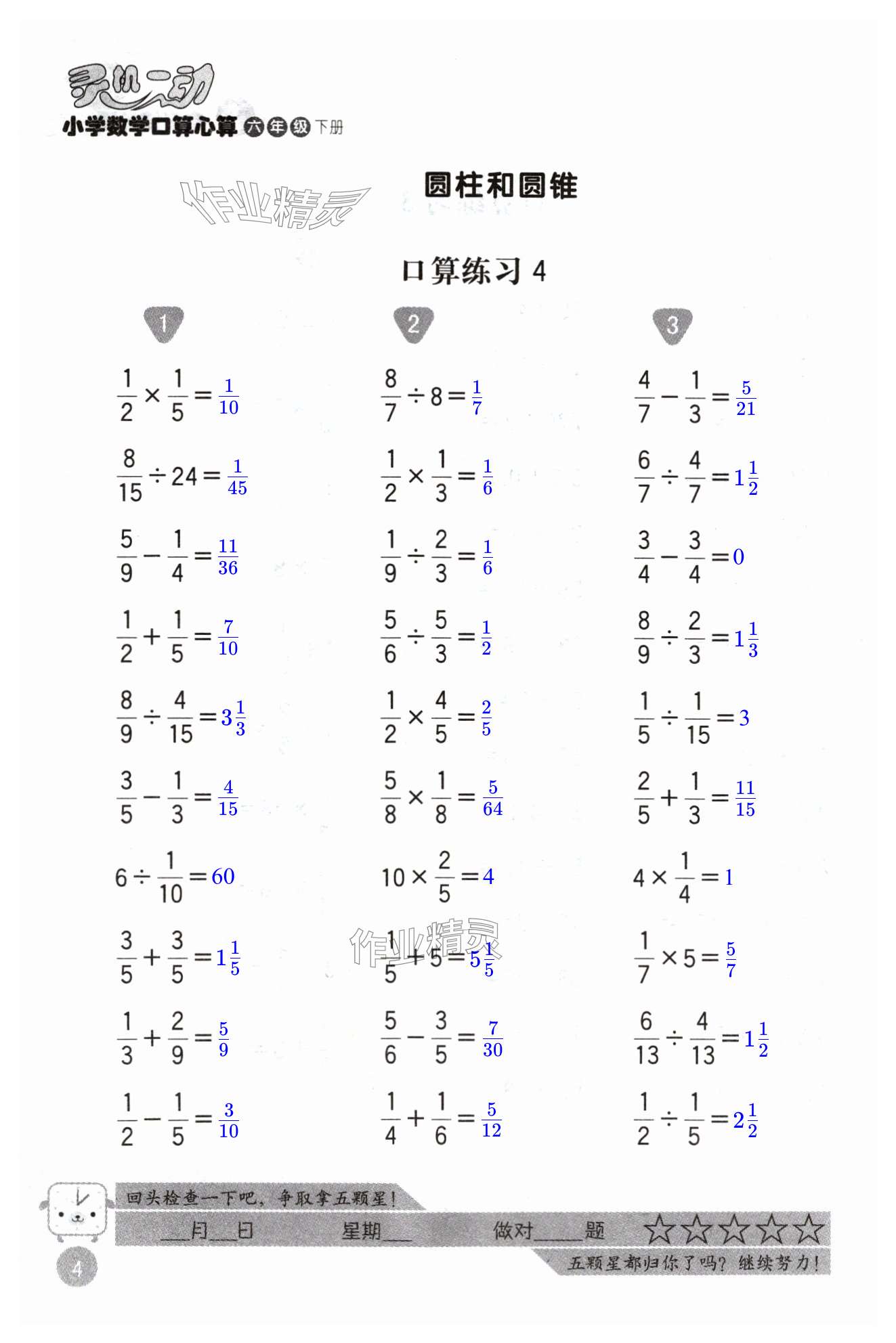 注:目前有些书本章节名称可能整理的还不是很完善,但都是按照顺序排列的,请同学们按照顺序仔细查找。练习册 2024年灵机一动口算心算六年级数学下册苏教版 答案主要是用来给同学们做完题方便对答案用的,请勿直接抄袭。