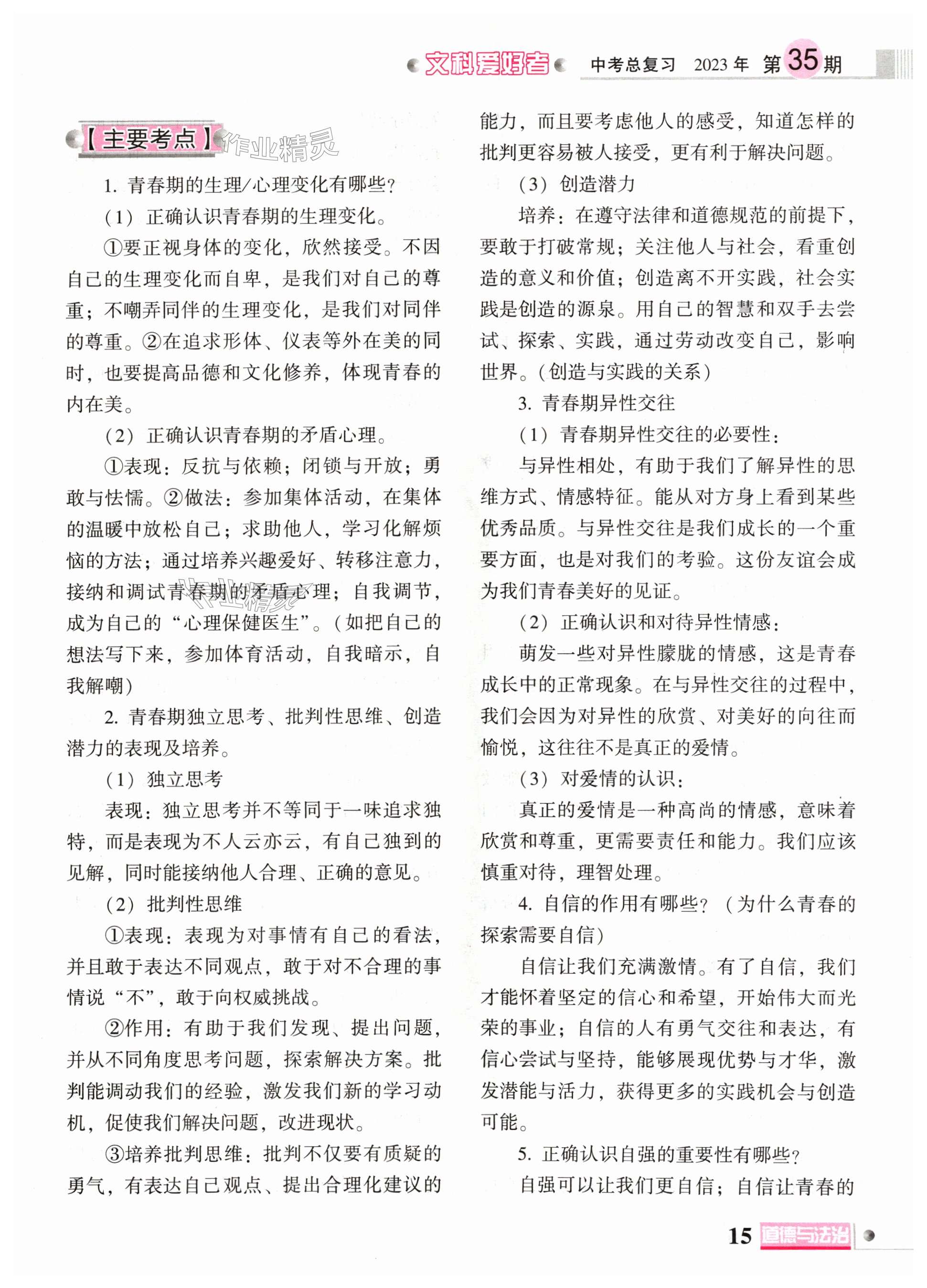 2024年文科爱好者中考总复习道德与法治第35期