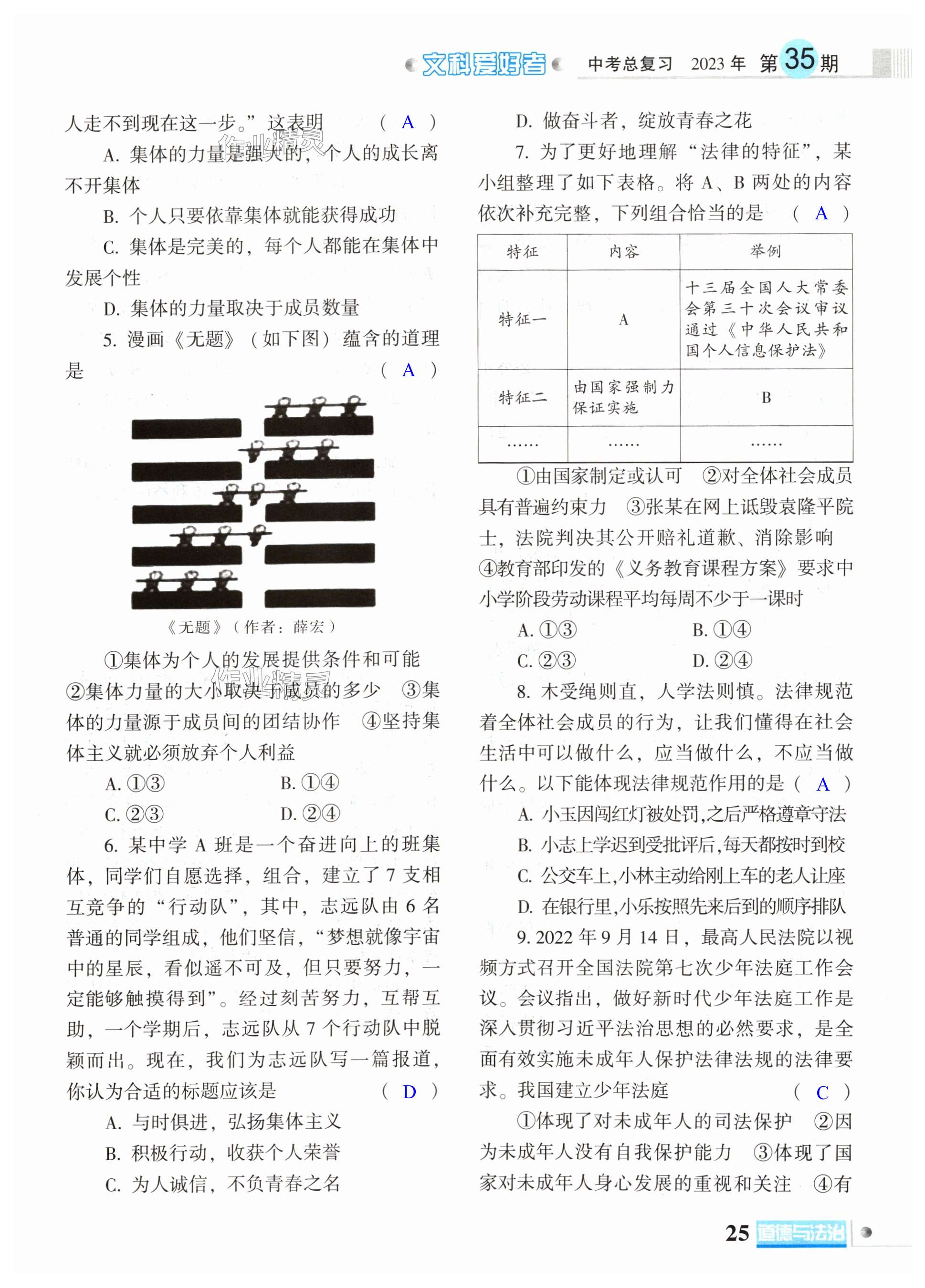 注:目前有些书本章节名称可能整理的还不是很完善,但都是按照顺序排列的,请同学们按照顺序仔细查找。练习册 2024年文科爱好者中考总复习道德与法治第35期 答案主要是用来给同学们做完题方便对答案用的,请勿直接抄袭。