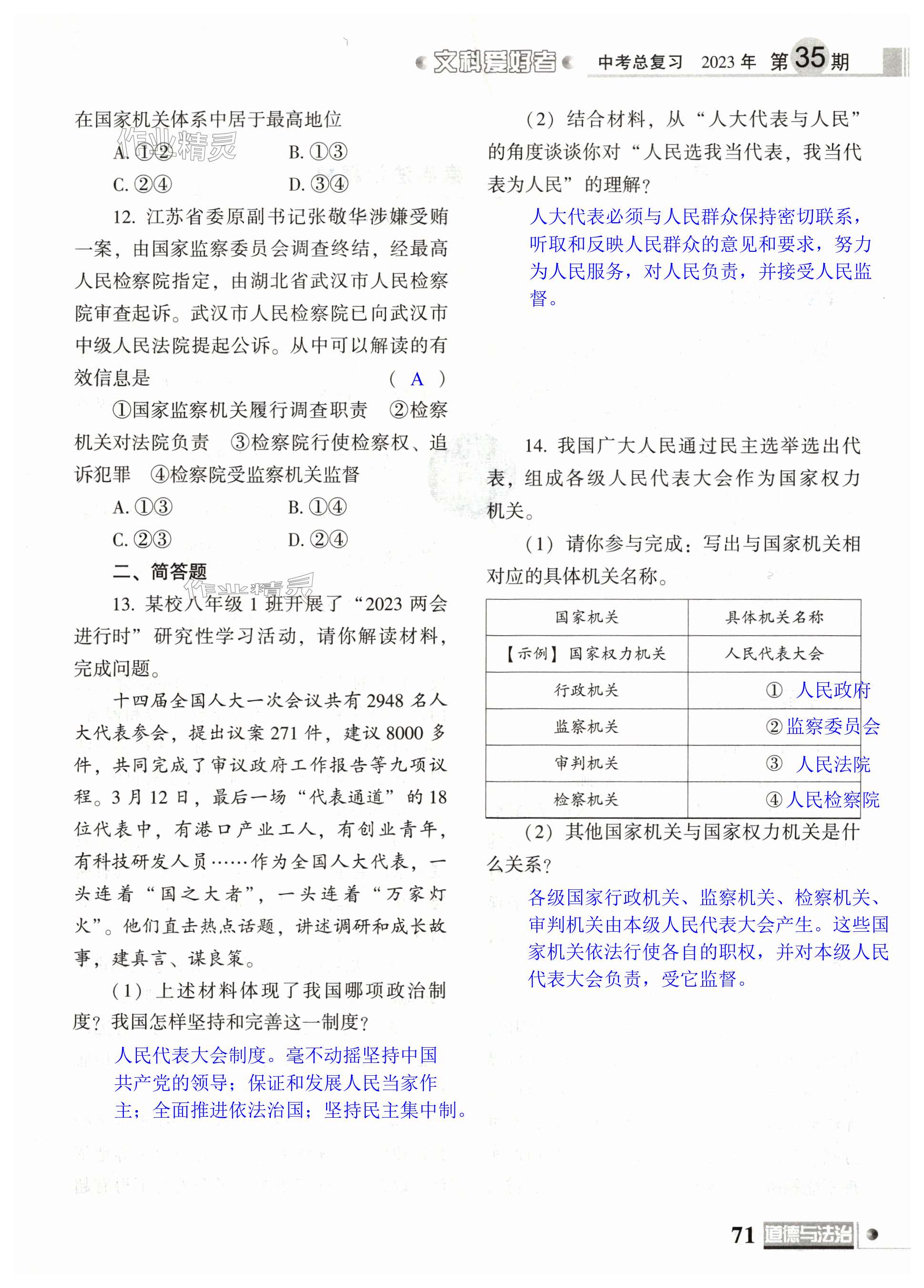 注:目前有些书本章节名称可能整理的还不是很完善,但都是按照顺序排列的,请同学们按照顺序仔细查找。练习册 2024年文科爱好者中考总复习道德与法治第35期 答案主要是用来给同学们做完题方便对答案用的,请勿直接抄袭。