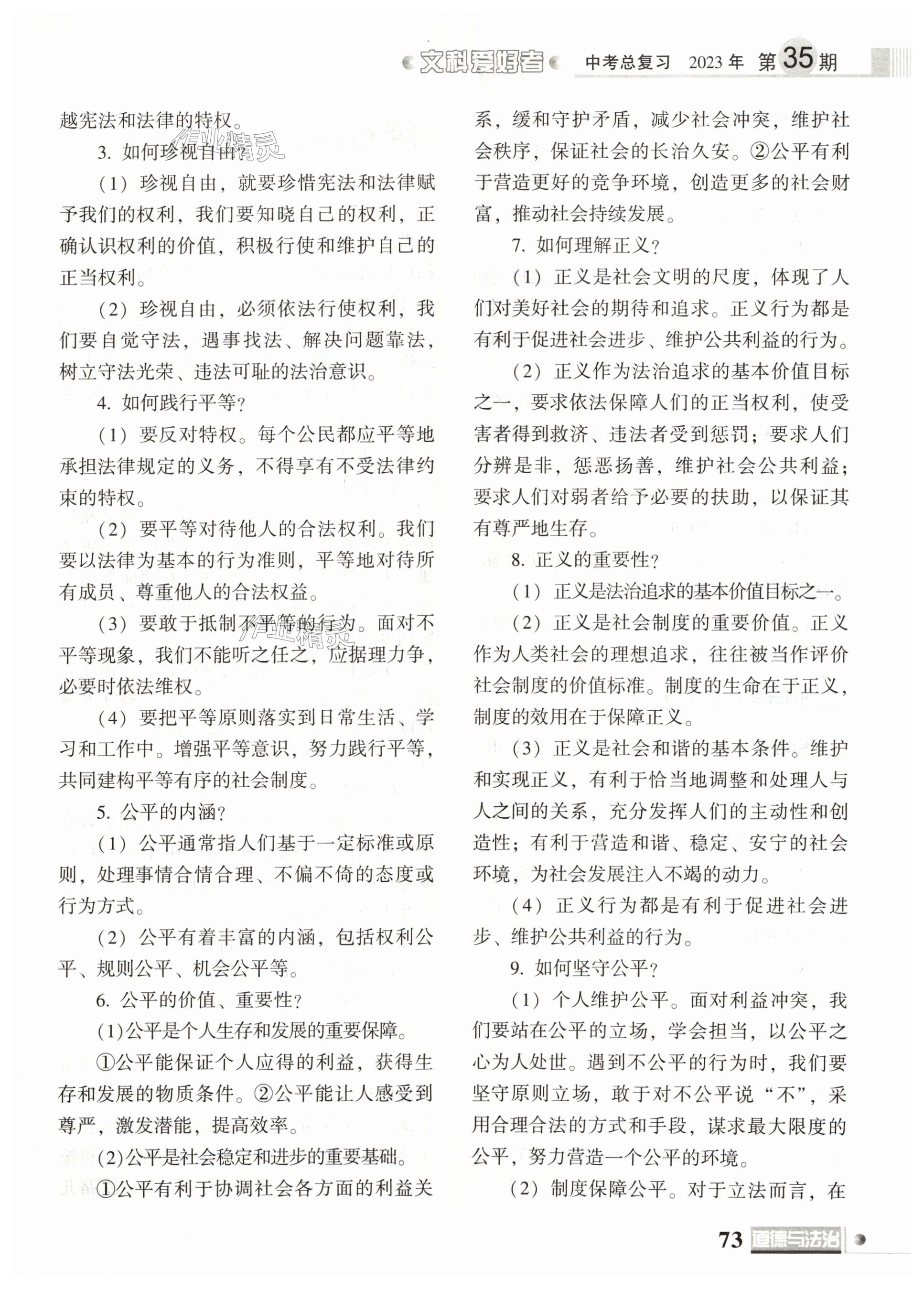 注:目前有些书本章节名称可能整理的还不是很完善,但都是按照顺序排列的,请同学们按照顺序仔细查找。练习册 2024年文科爱好者中考总复习道德与法治第35期 答案主要是用来给同学们做完题方便对答案用的,请勿直接抄袭。
