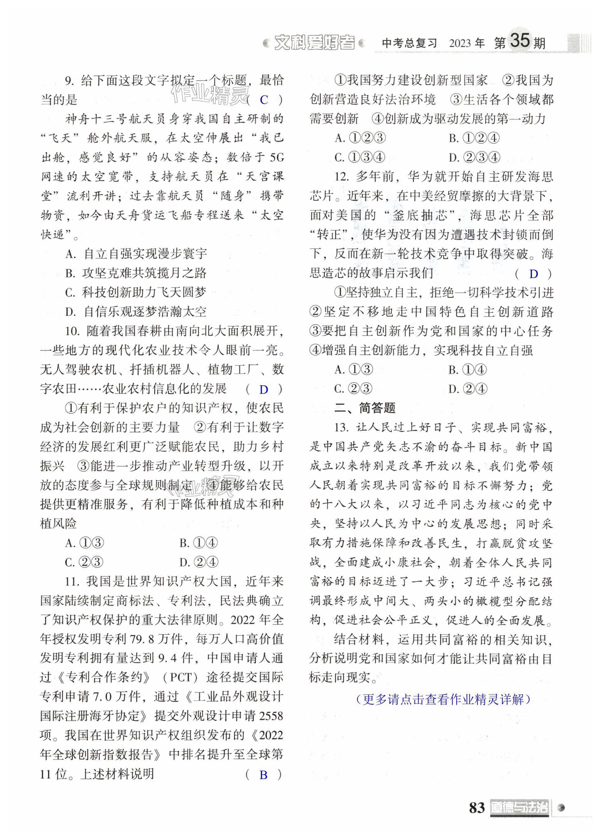 注:目前有些书本章节名称可能整理的还不是很完善,但都是按照顺序排列的,请同学们按照顺序仔细查找。练习册 2024年文科爱好者中考总复习道德与法治第35期 答案主要是用来给同学们做完题方便对答案用的,请勿直接抄袭。