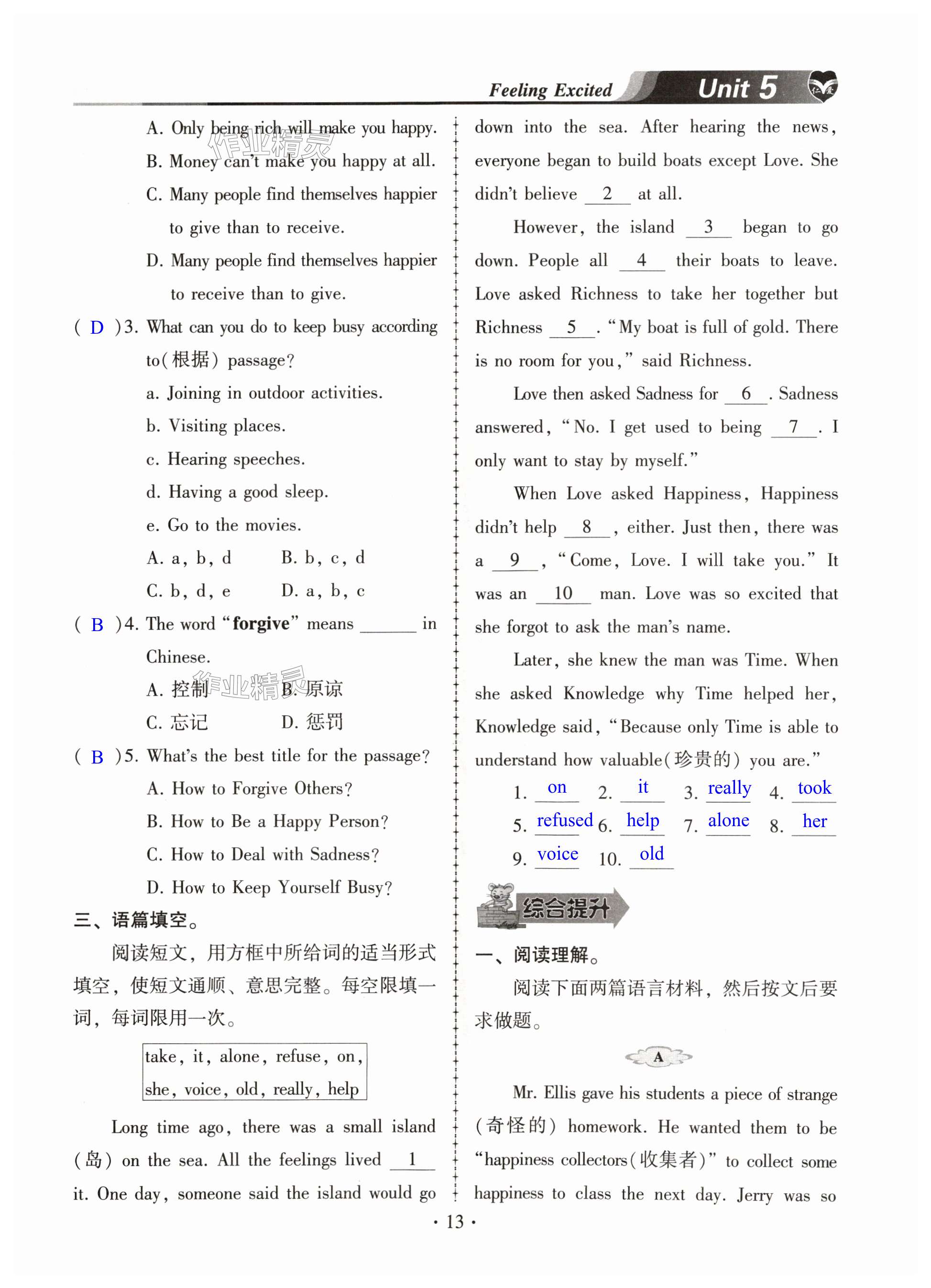 注:目前有些书本章节名称可能整理的还不是很完善,但都是按照顺序排列的,请同学们按照顺序仔细查找。练习册 2024年仁爱英语同步练习册八年级英语下册仁爱版河南专版 答案主要是用来给同学们做完题方便对答案用的,请勿直接抄袭。