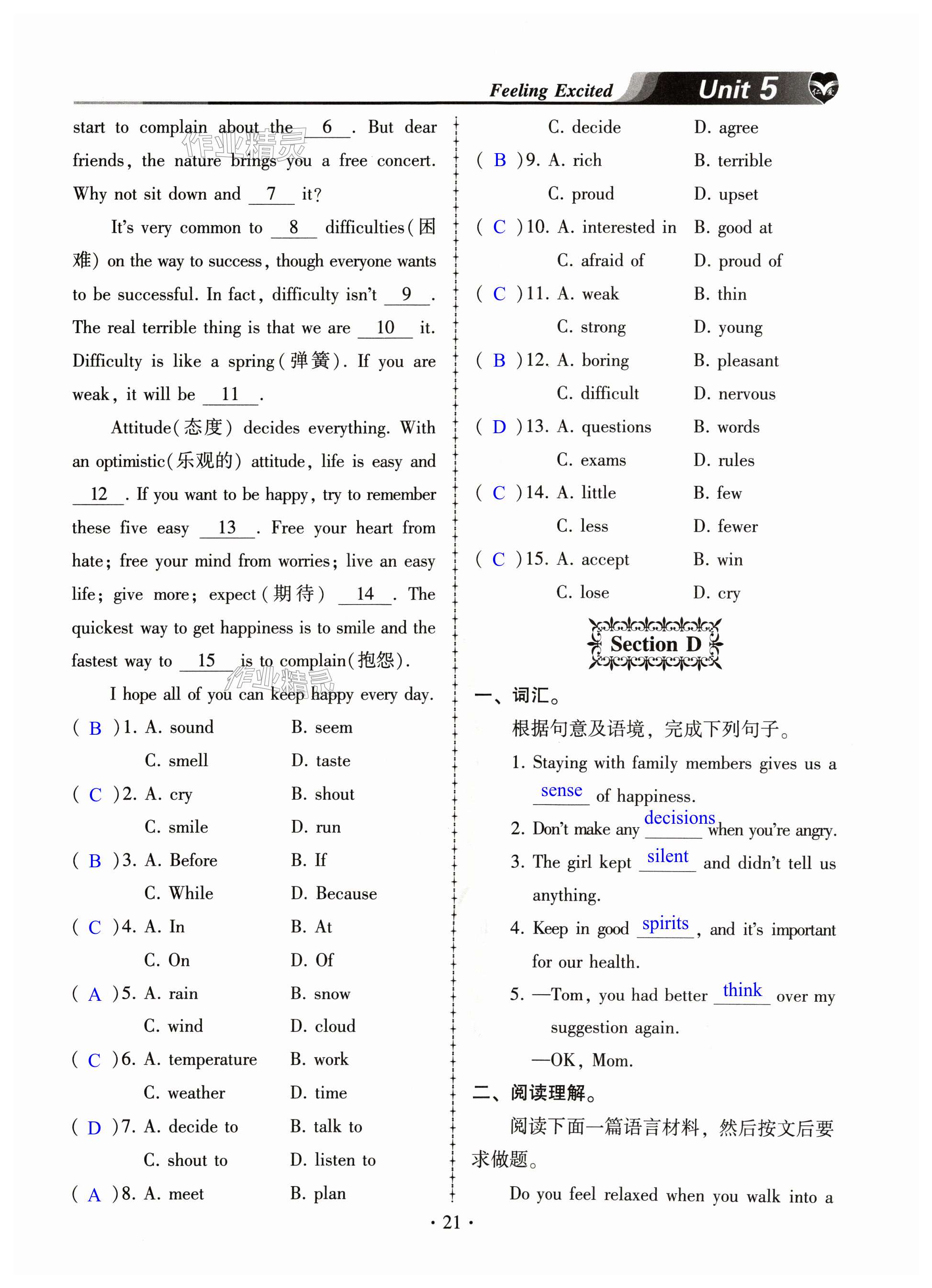 注:目前有些书本章节名称可能整理的还不是很完善,但都是按照顺序排列的,请同学们按照顺序仔细查找。练习册 2024年仁爱英语同步练习册八年级英语下册仁爱版河南专版 答案主要是用来给同学们做完题方便对答案用的,请勿直接抄袭。