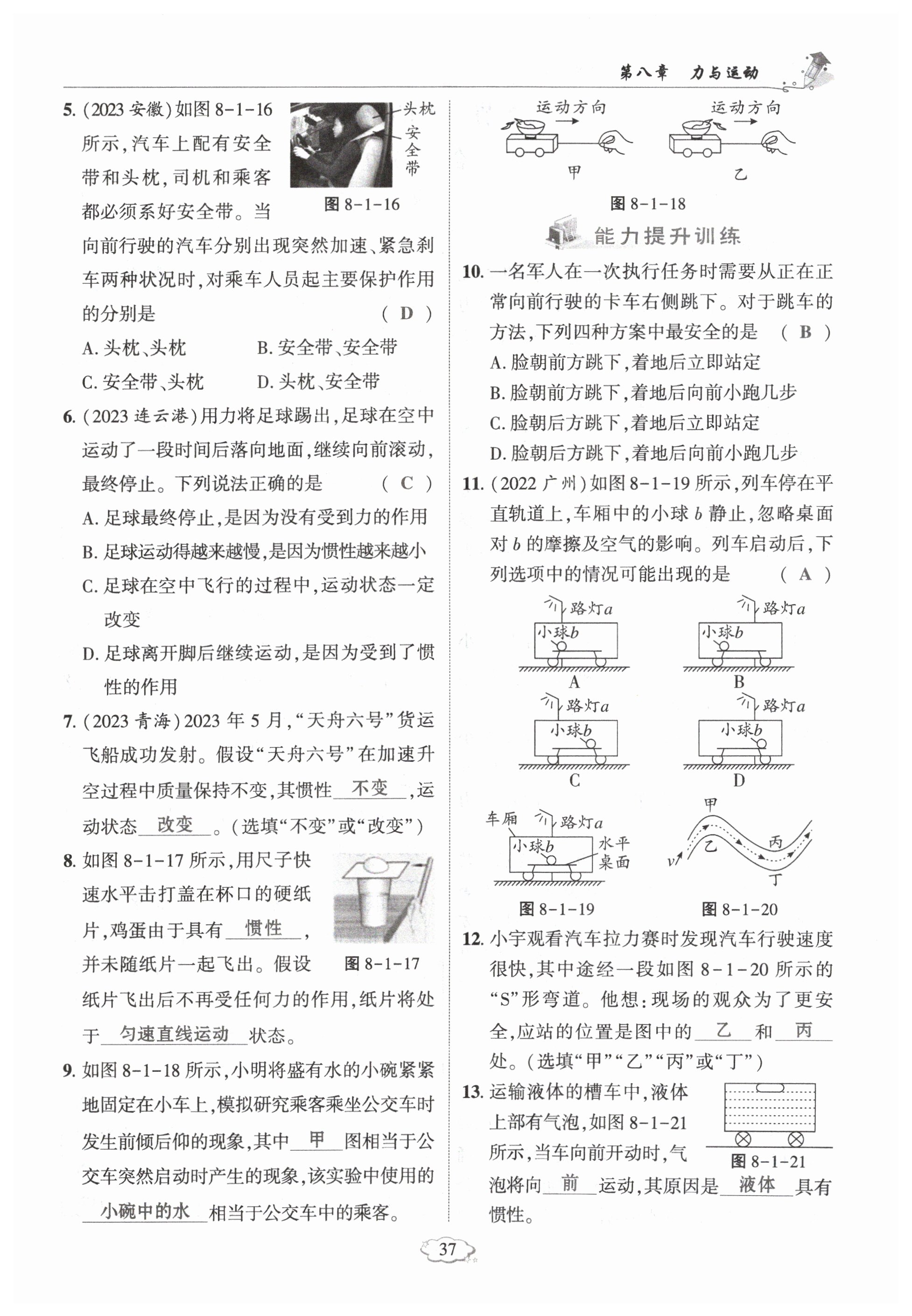 注:目前有些书本章节名称可能整理的还不是很完善,但都是按照顺序排列的,请同学们按照顺序仔细查找。练习册 2024年启航新课堂八年级物理下册教科版 答案主要是用来给同学们做完题方便对答案用的,请勿直接抄袭。