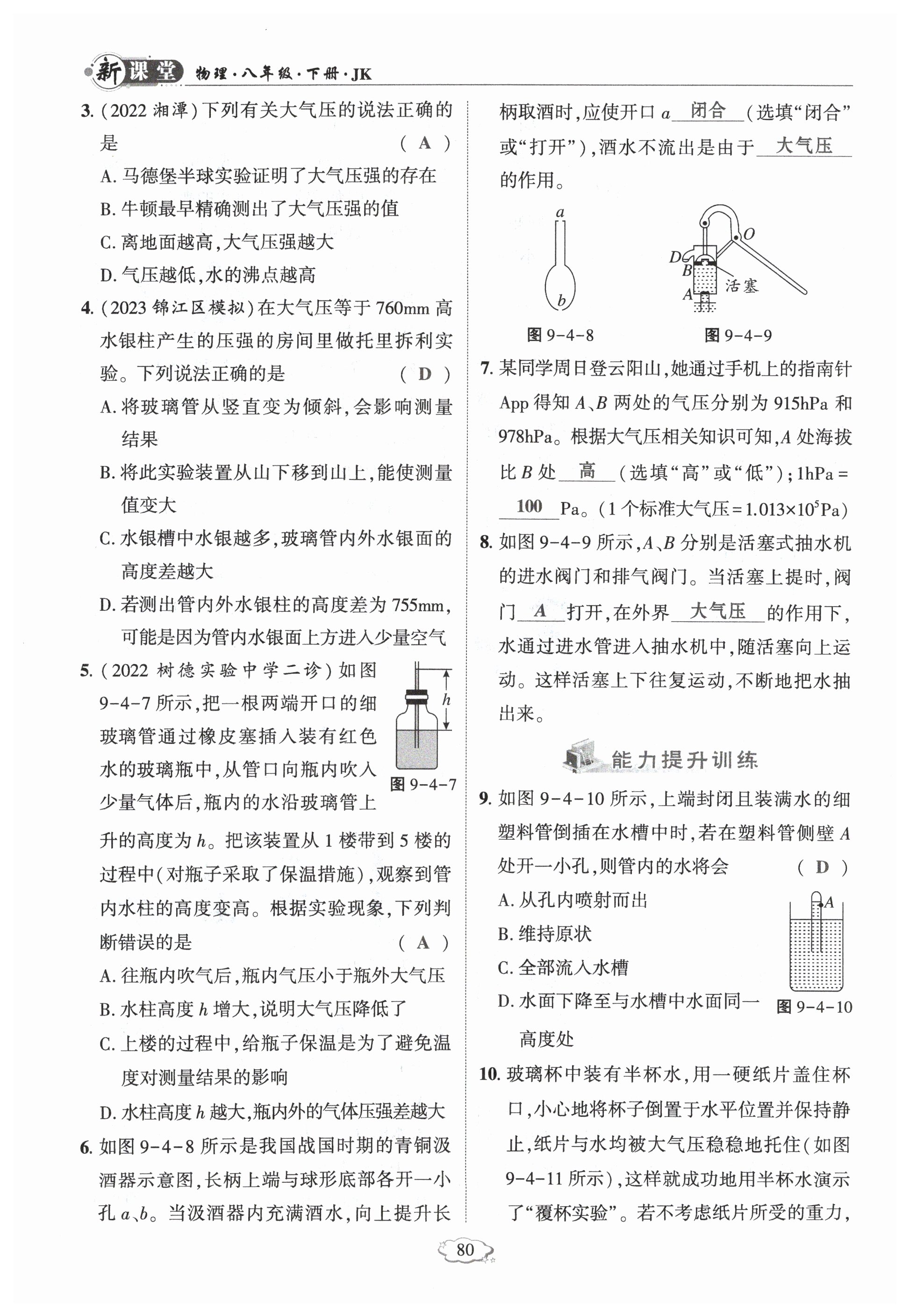 2024年启航新课堂八年级物理下册教科版