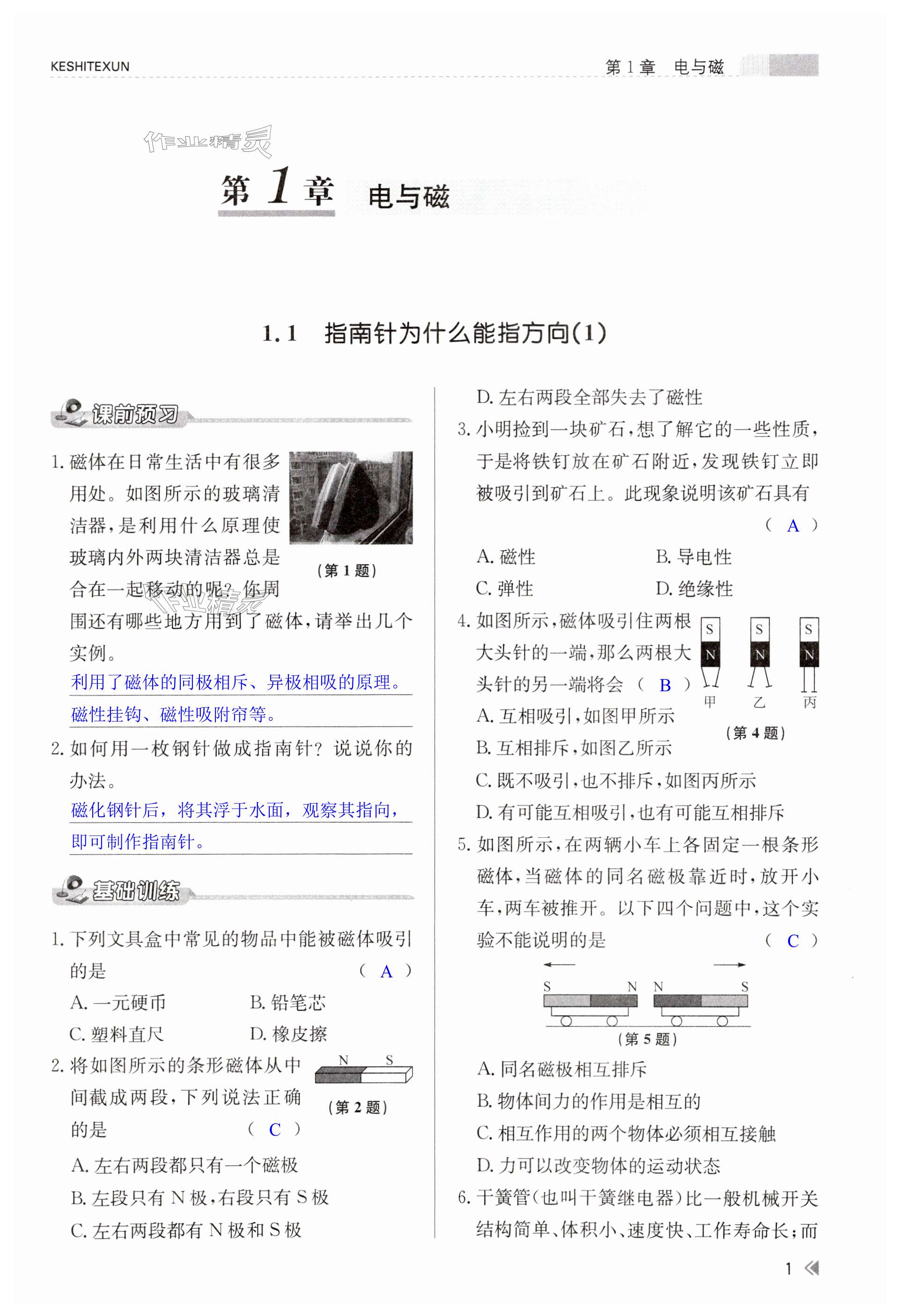 注:目前有些书本章节名称可能整理的还不是很完善,但都是按照顺序排列的,请同学们按照顺序仔细查找。练习册 2024年课时特训八年级科学下册浙教版 答案主要是用来给同学们做完题方便对答案用的,请勿直接抄袭。
