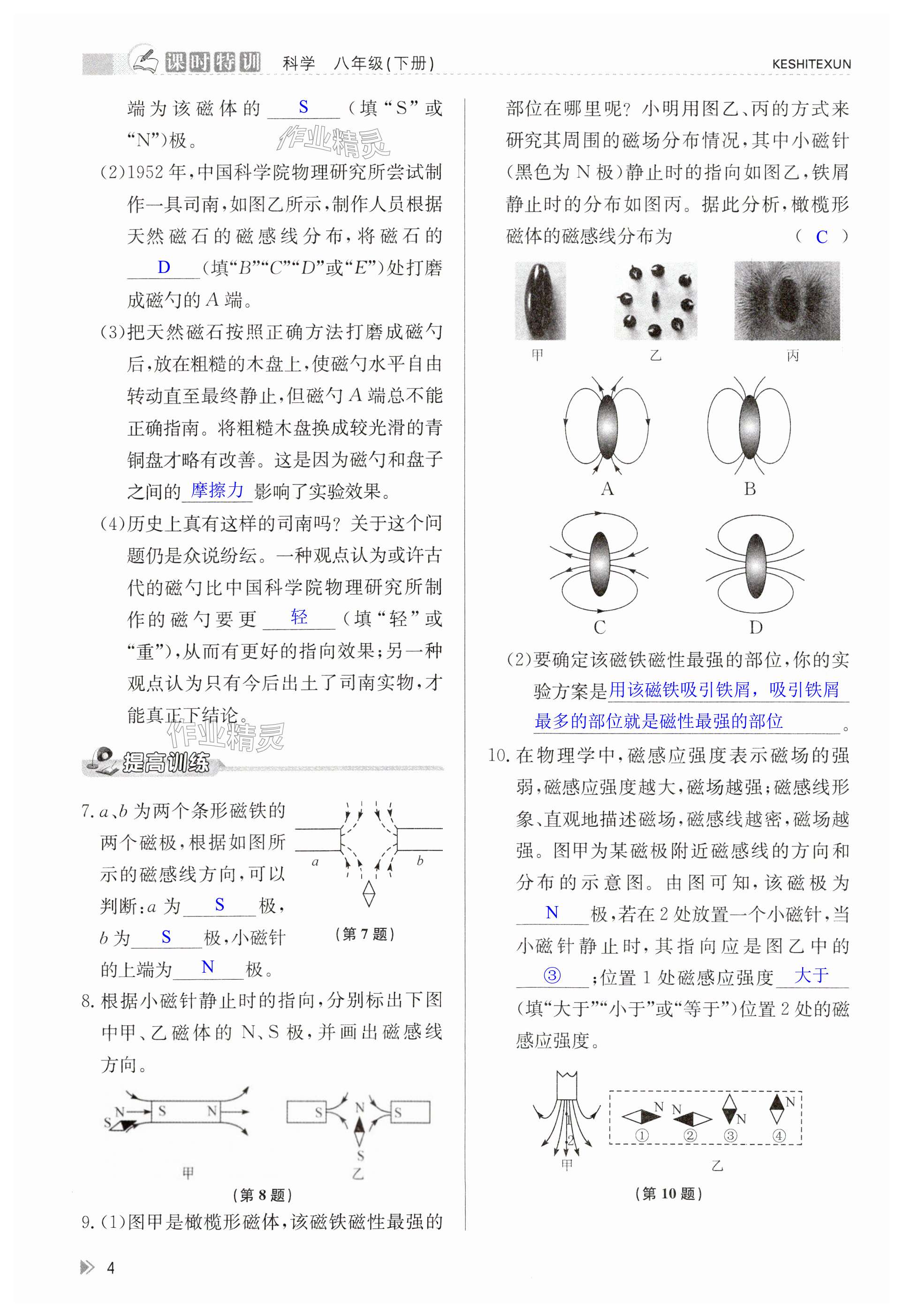 注:目前有些书本章节名称可能整理的还不是很完善,但都是按照顺序排列的,请同学们按照顺序仔细查找。练习册 2024年课时特训八年级科学下册浙教版 答案主要是用来给同学们做完题方便对答案用的,请勿直接抄袭。