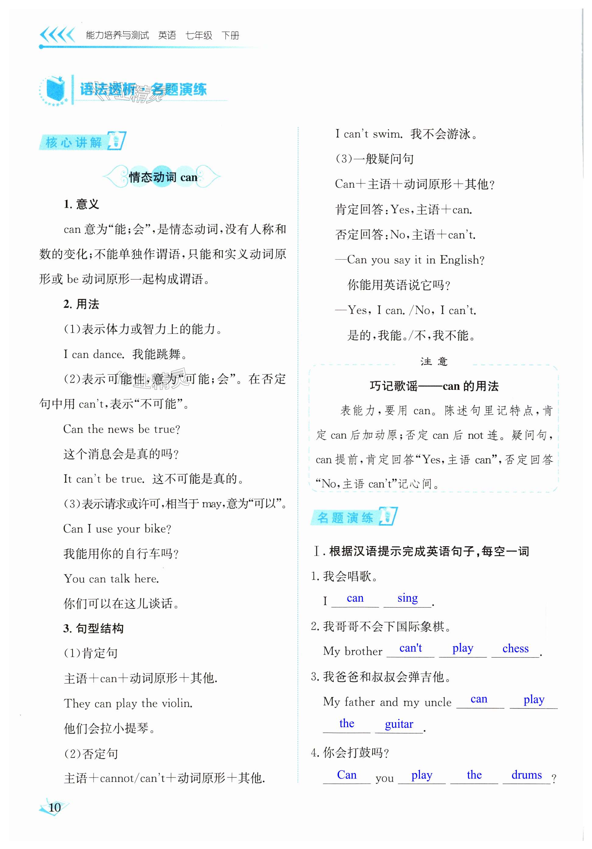 注:目前有些书本章节名称可能整理的还不是很完善,但都是按照顺序排列的,请同学们按照顺序仔细查找。练习册 2024年能力培养与测试七年级英语下册人教版 答案主要是用来给同学们做完题方便对答案用的,请勿直接抄袭。