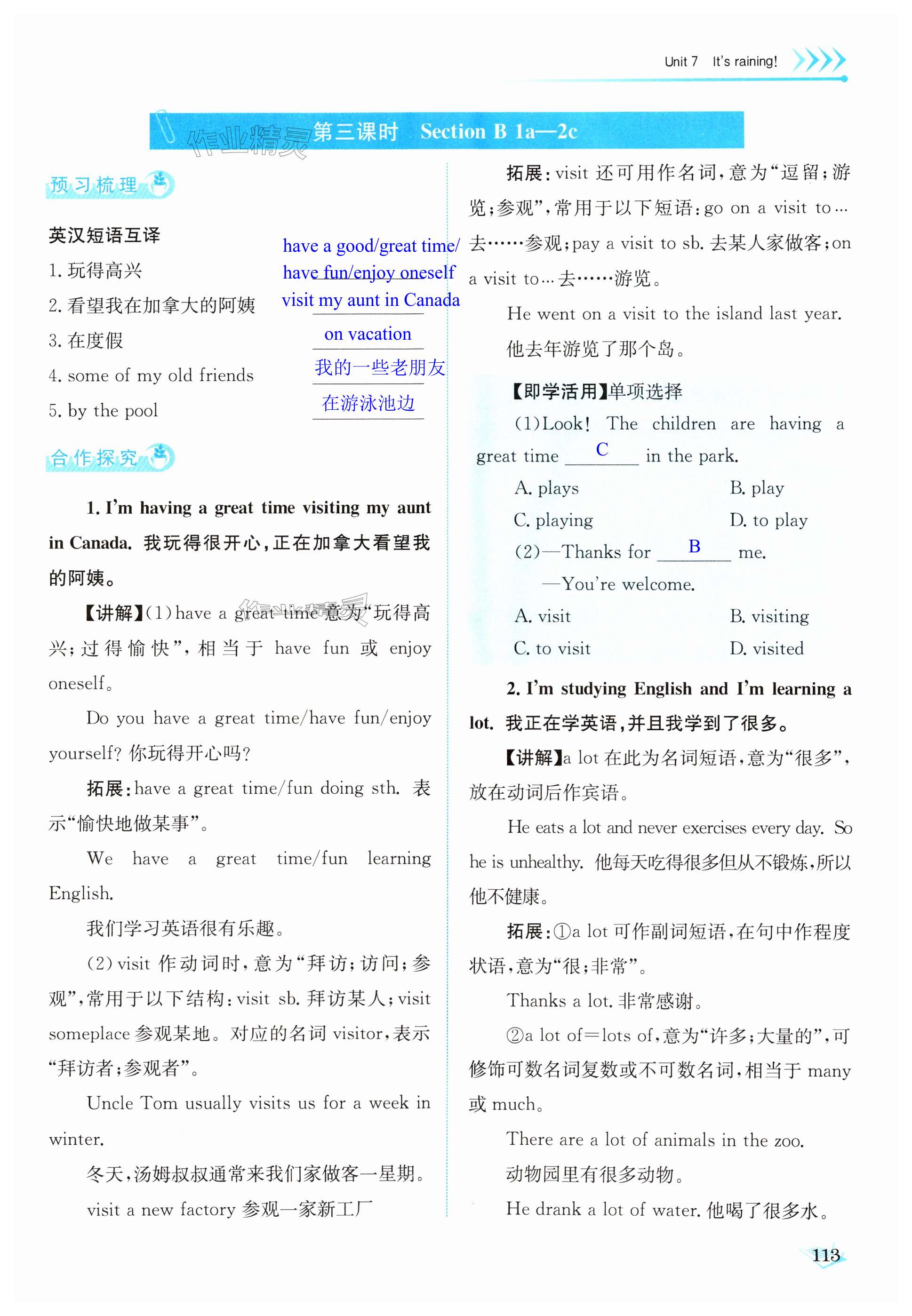 注:目前有些书本章节名称可能整理的还不是很完善,但都是按照顺序排列的,请同学们按照顺序仔细查找。练习册 2024年能力培养与测试七年级英语下册人教版 答案主要是用来给同学们做完题方便对答案用的,请勿直接抄袭。
