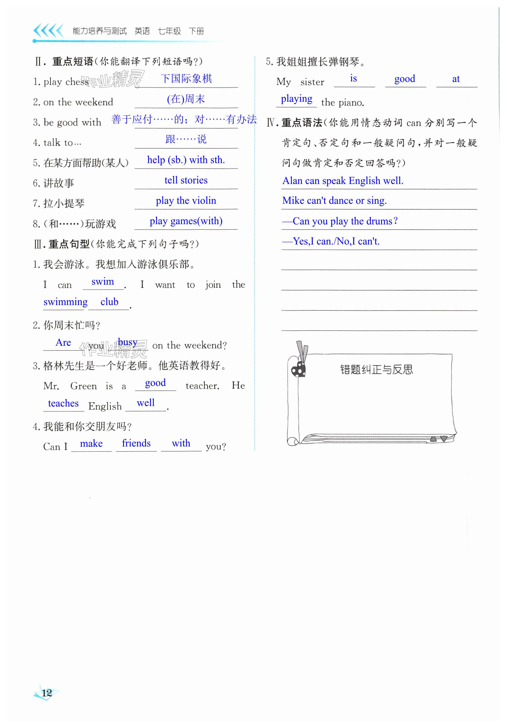 注:目前有些书本章节名称可能整理的还不是很完善,但都是按照顺序排列的,请同学们按照顺序仔细查找。练习册 2024年能力培养与测试七年级英语下册人教版 答案主要是用来给同学们做完题方便对答案用的,请勿直接抄袭。