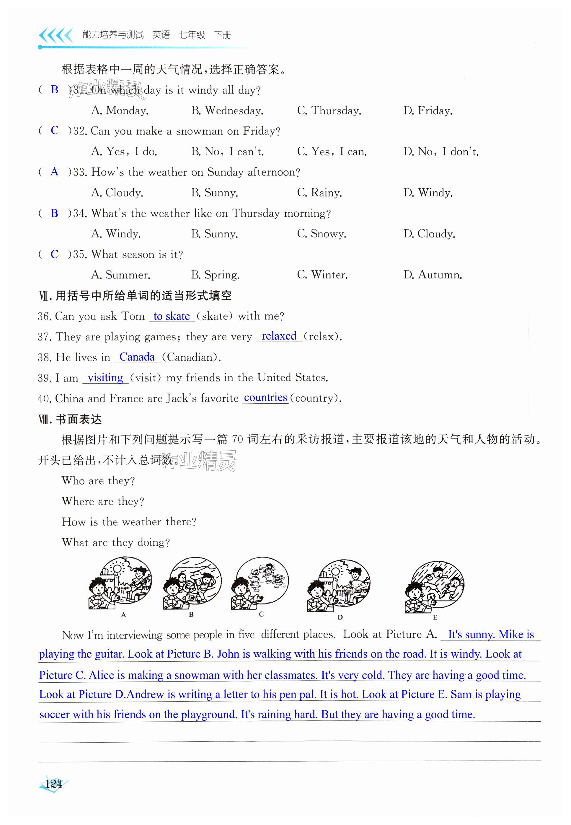注:目前有些书本章节名称可能整理的还不是很完善,但都是按照顺序排列的,请同学们按照顺序仔细查找。练习册 2024年能力培养与测试七年级英语下册人教版 答案主要是用来给同学们做完题方便对答案用的,请勿直接抄袭。