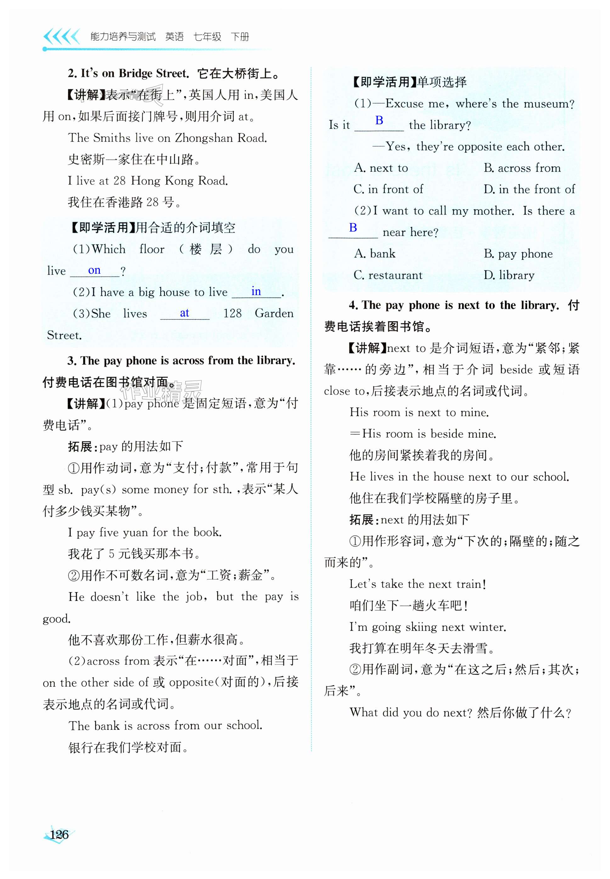 注:目前有些书本章节名称可能整理的还不是很完善,但都是按照顺序排列的,请同学们按照顺序仔细查找。练习册 2024年能力培养与测试七年级英语下册人教版 答案主要是用来给同学们做完题方便对答案用的,请勿直接抄袭。