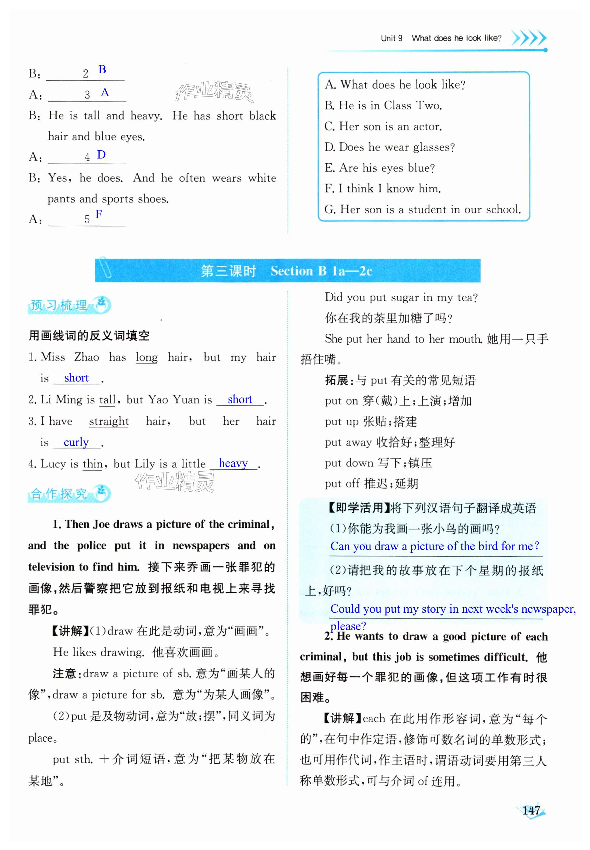 注:目前有些书本章节名称可能整理的还不是很完善,但都是按照顺序排列的,请同学们按照顺序仔细查找。练习册 2024年能力培养与测试七年级英语下册人教版 答案主要是用来给同学们做完题方便对答案用的,请勿直接抄袭。