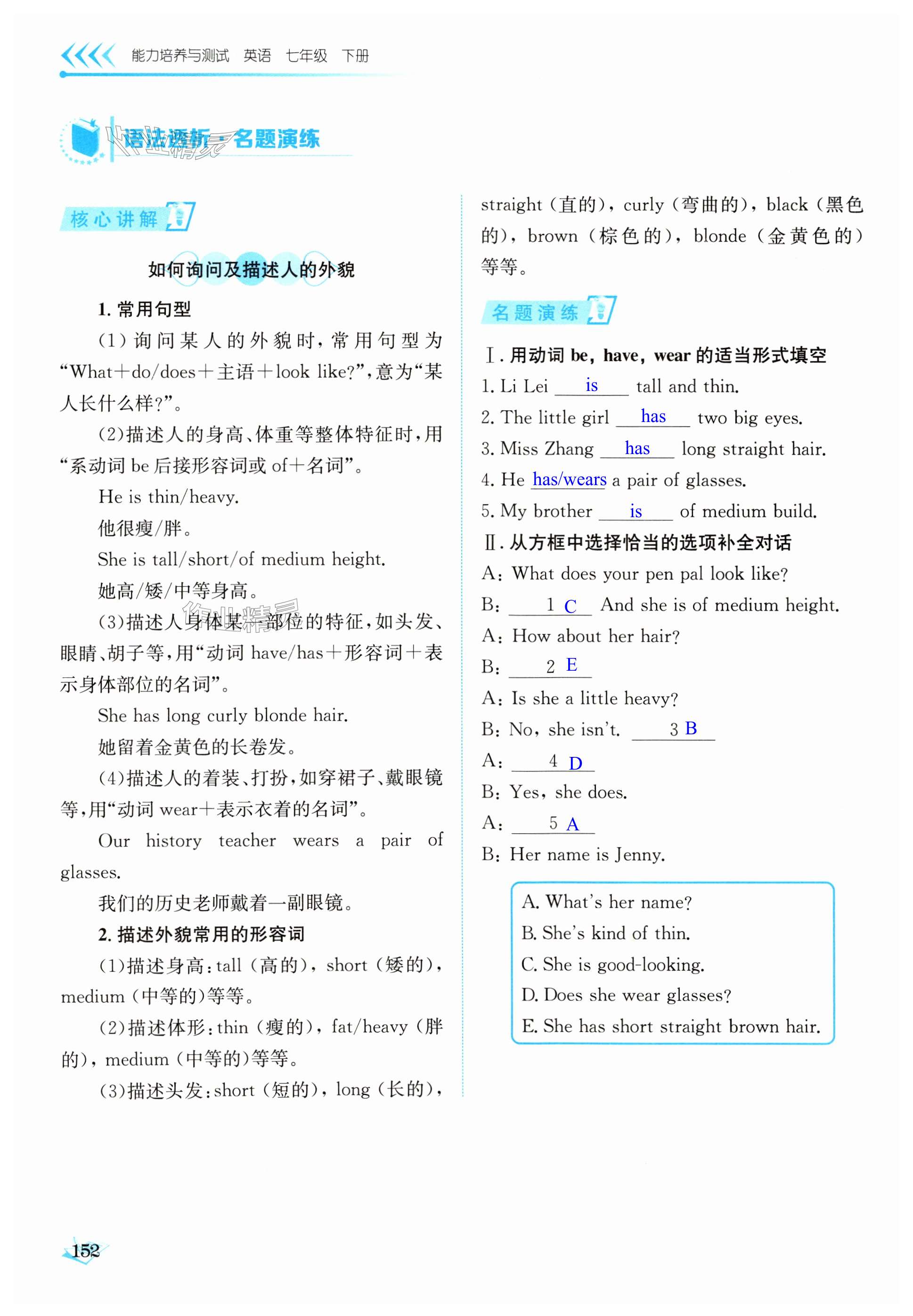 注:目前有些书本章节名称可能整理的还不是很完善,但都是按照顺序排列的,请同学们按照顺序仔细查找。练习册 2024年能力培养与测试七年级英语下册人教版 答案主要是用来给同学们做完题方便对答案用的,请勿直接抄袭。