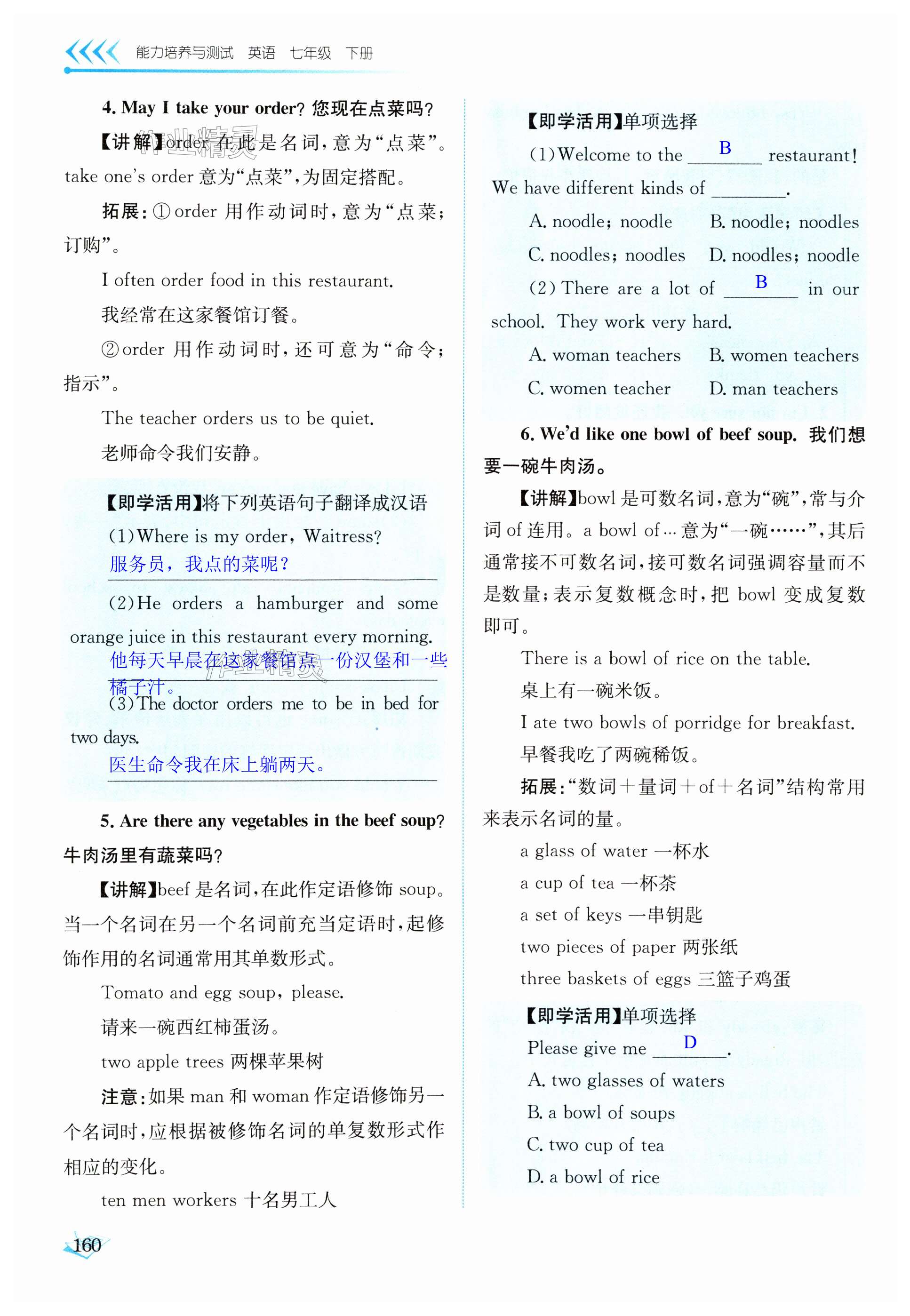 注:目前有些书本章节名称可能整理的还不是很完善,但都是按照顺序排列的,请同学们按照顺序仔细查找。练习册 2024年能力培养与测试七年级英语下册人教版 答案主要是用来给同学们做完题方便对答案用的,请勿直接抄袭。