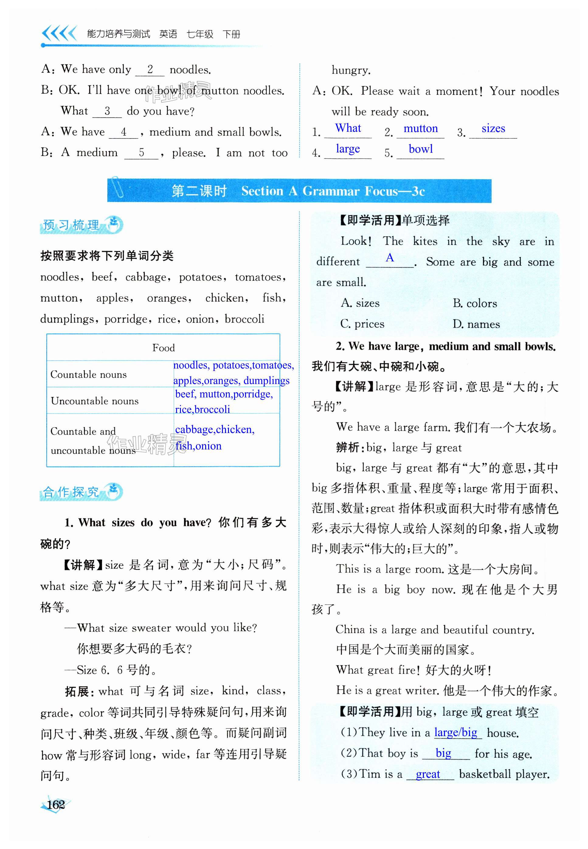 注:目前有些书本章节名称可能整理的还不是很完善,但都是按照顺序排列的,请同学们按照顺序仔细查找。练习册 2024年能力培养与测试七年级英语下册人教版 答案主要是用来给同学们做完题方便对答案用的,请勿直接抄袭。