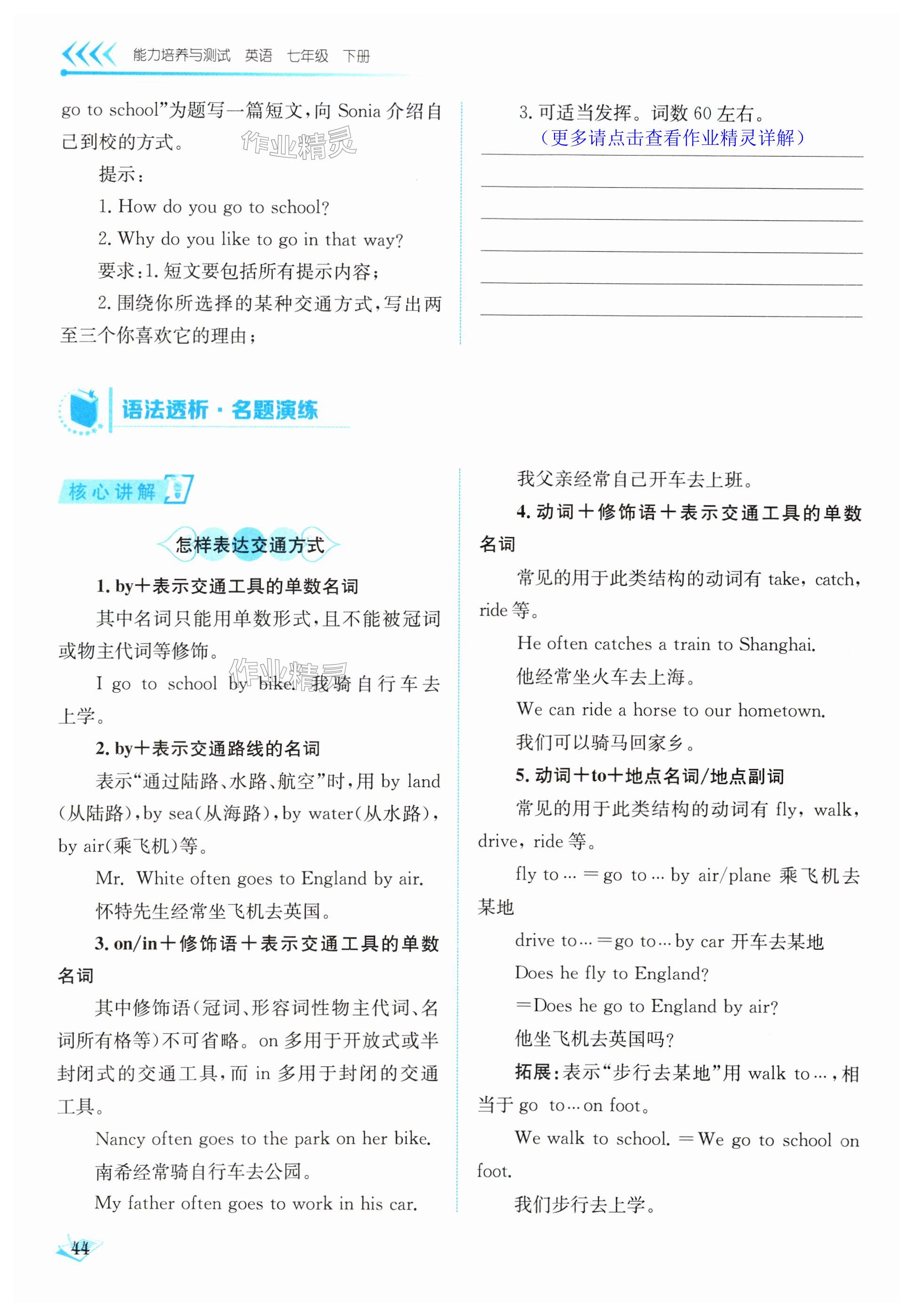 注:目前有些书本章节名称可能整理的还不是很完善,但都是按照顺序排列的,请同学们按照顺序仔细查找。练习册 2024年能力培养与测试七年级英语下册人教版 答案主要是用来给同学们做完题方便对答案用的,请勿直接抄袭。