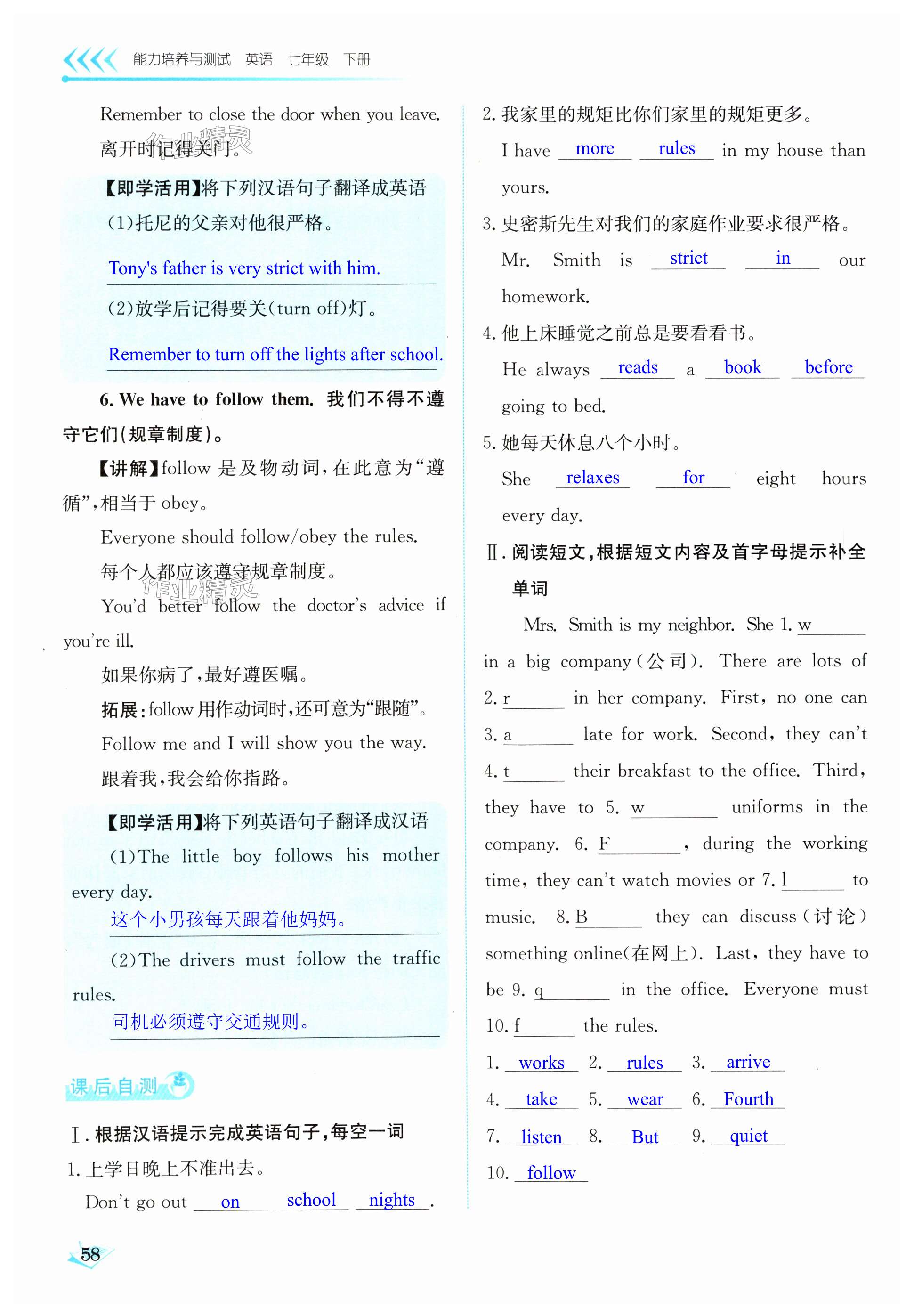 注:目前有些书本章节名称可能整理的还不是很完善,但都是按照顺序排列的,请同学们按照顺序仔细查找。练习册 2024年能力培养与测试七年级英语下册人教版 答案主要是用来给同学们做完题方便对答案用的,请勿直接抄袭。