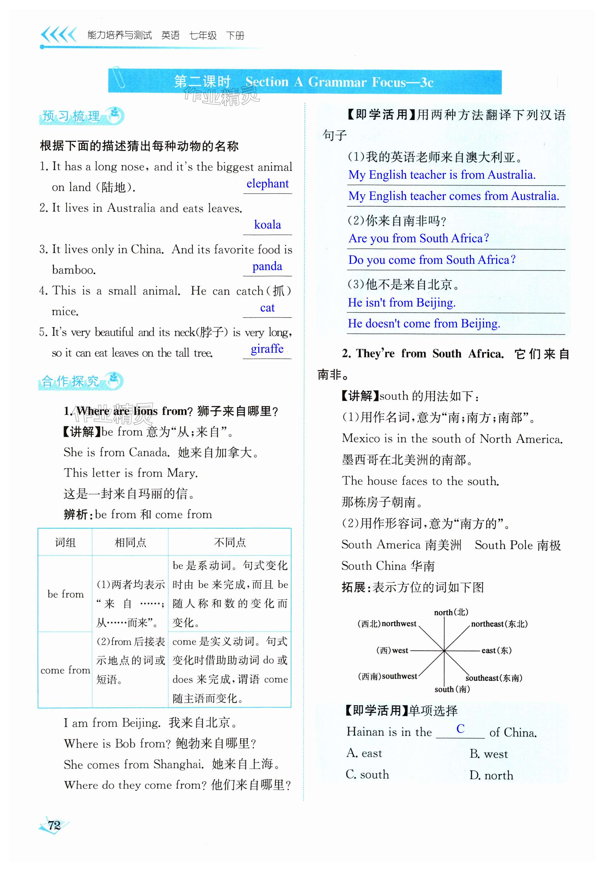 注:目前有些书本章节名称可能整理的还不是很完善,但都是按照顺序排列的,请同学们按照顺序仔细查找。练习册 2024年能力培养与测试七年级英语下册人教版 答案主要是用来给同学们做完题方便对答案用的,请勿直接抄袭。