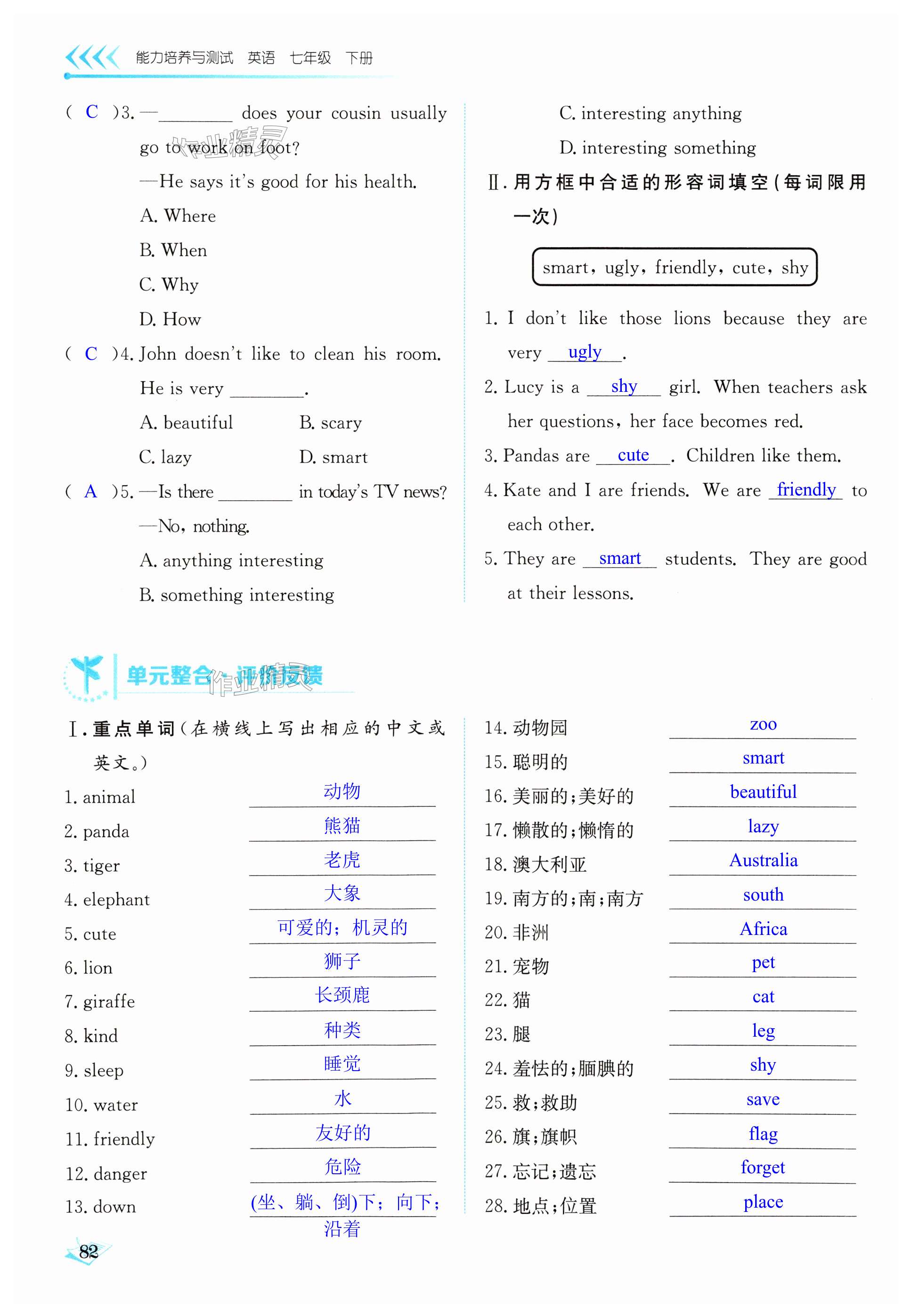 注:目前有些书本章节名称可能整理的还不是很完善,但都是按照顺序排列的,请同学们按照顺序仔细查找。练习册 2024年能力培养与测试七年级英语下册人教版 答案主要是用来给同学们做完题方便对答案用的,请勿直接抄袭。