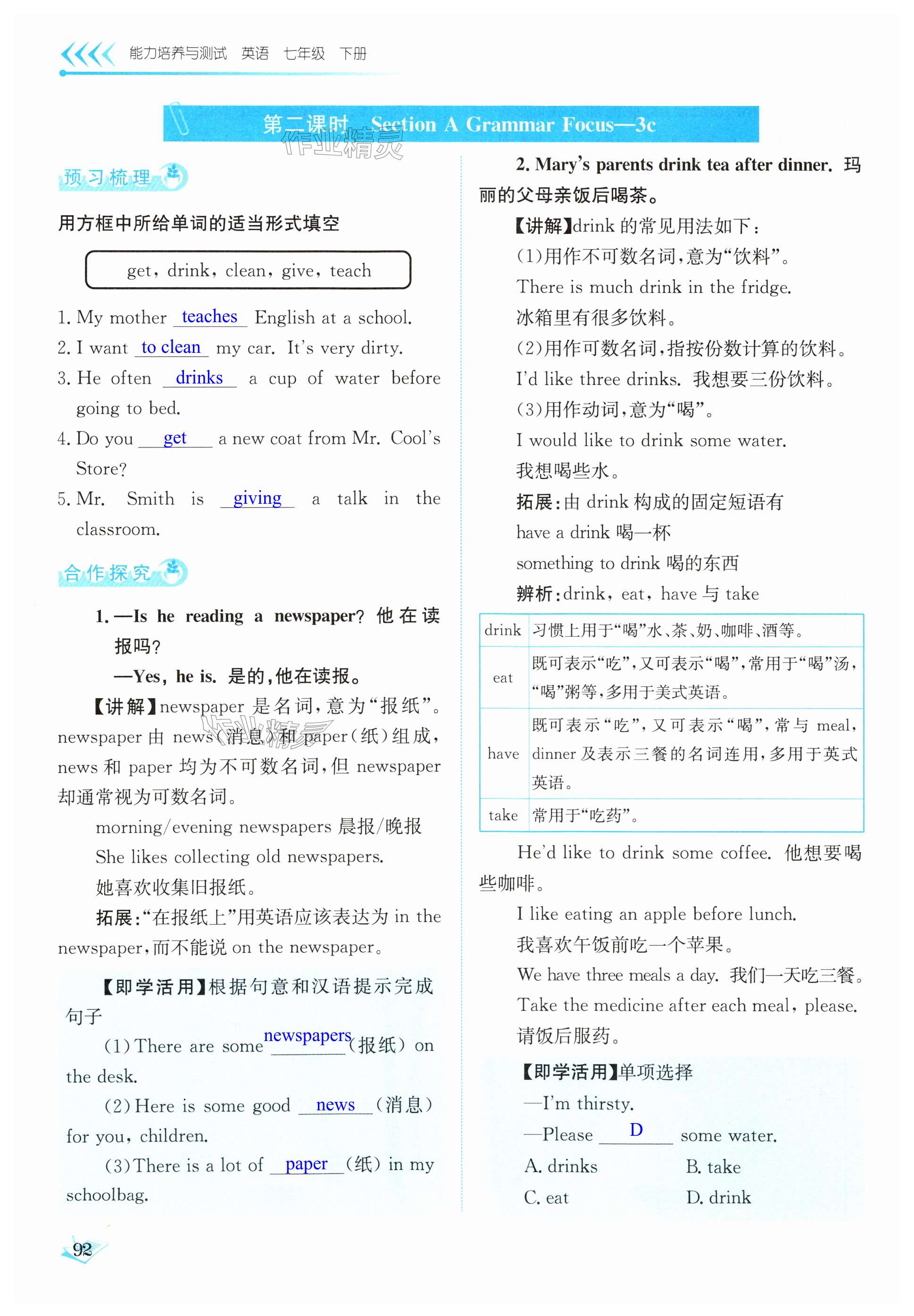 注:目前有些书本章节名称可能整理的还不是很完善,但都是按照顺序排列的,请同学们按照顺序仔细查找。练习册 2024年能力培养与测试七年级英语下册人教版 答案主要是用来给同学们做完题方便对答案用的,请勿直接抄袭。