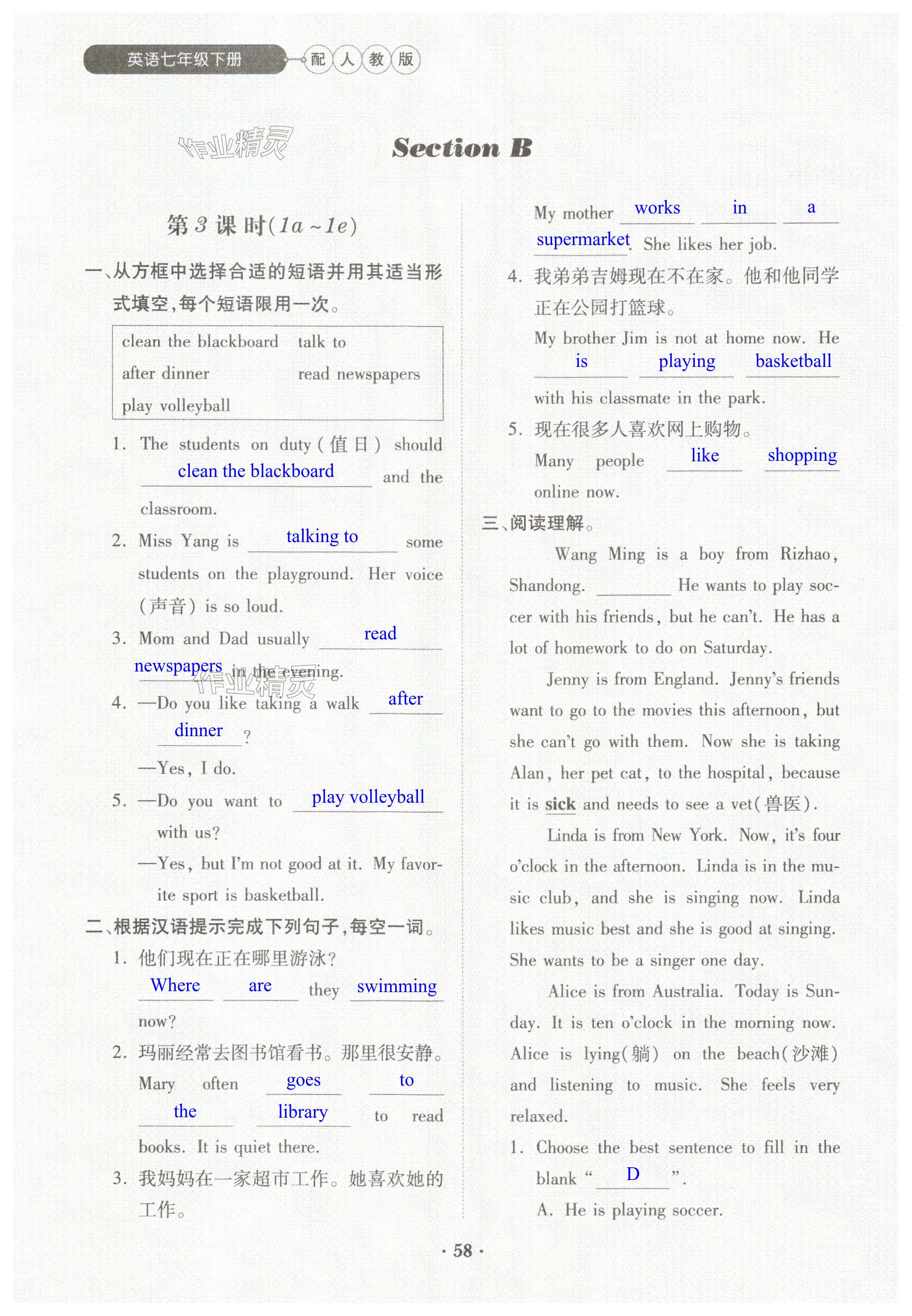 注:目前有些书本章节名称可能整理的还不是很完善,但都是按照顺序排列的,请同学们按照顺序仔细查找。练习册 2024年一课一练创新练习七年级英语下册人教版 答案主要是用来给同学们做完题方便对答案用的,请勿直接抄袭。