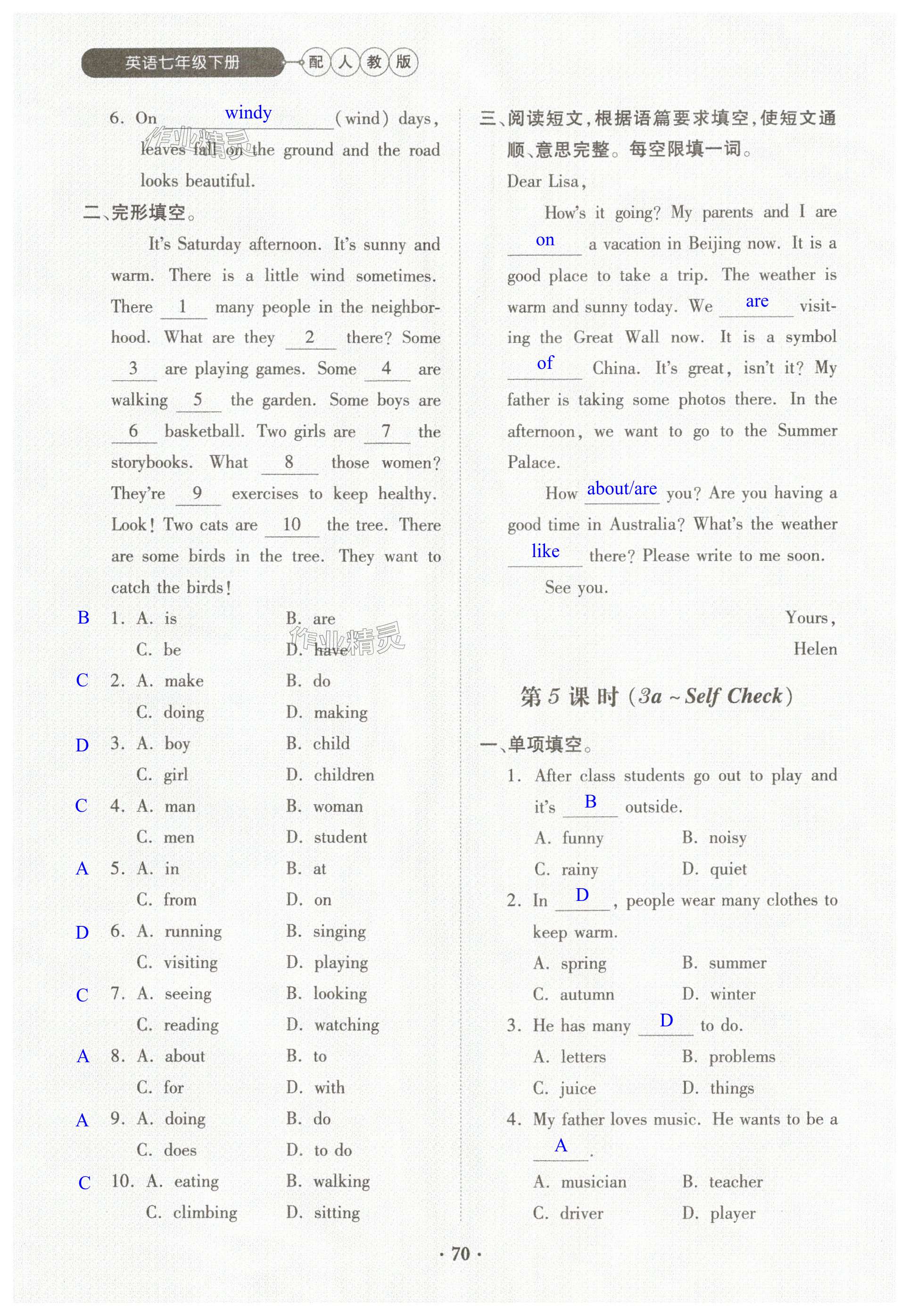 注:目前有些书本章节名称可能整理的还不是很完善,但都是按照顺序排列的,请同学们按照顺序仔细查找。练习册 2024年一课一练创新练习七年级英语下册人教版 答案主要是用来给同学们做完题方便对答案用的,请勿直接抄袭。