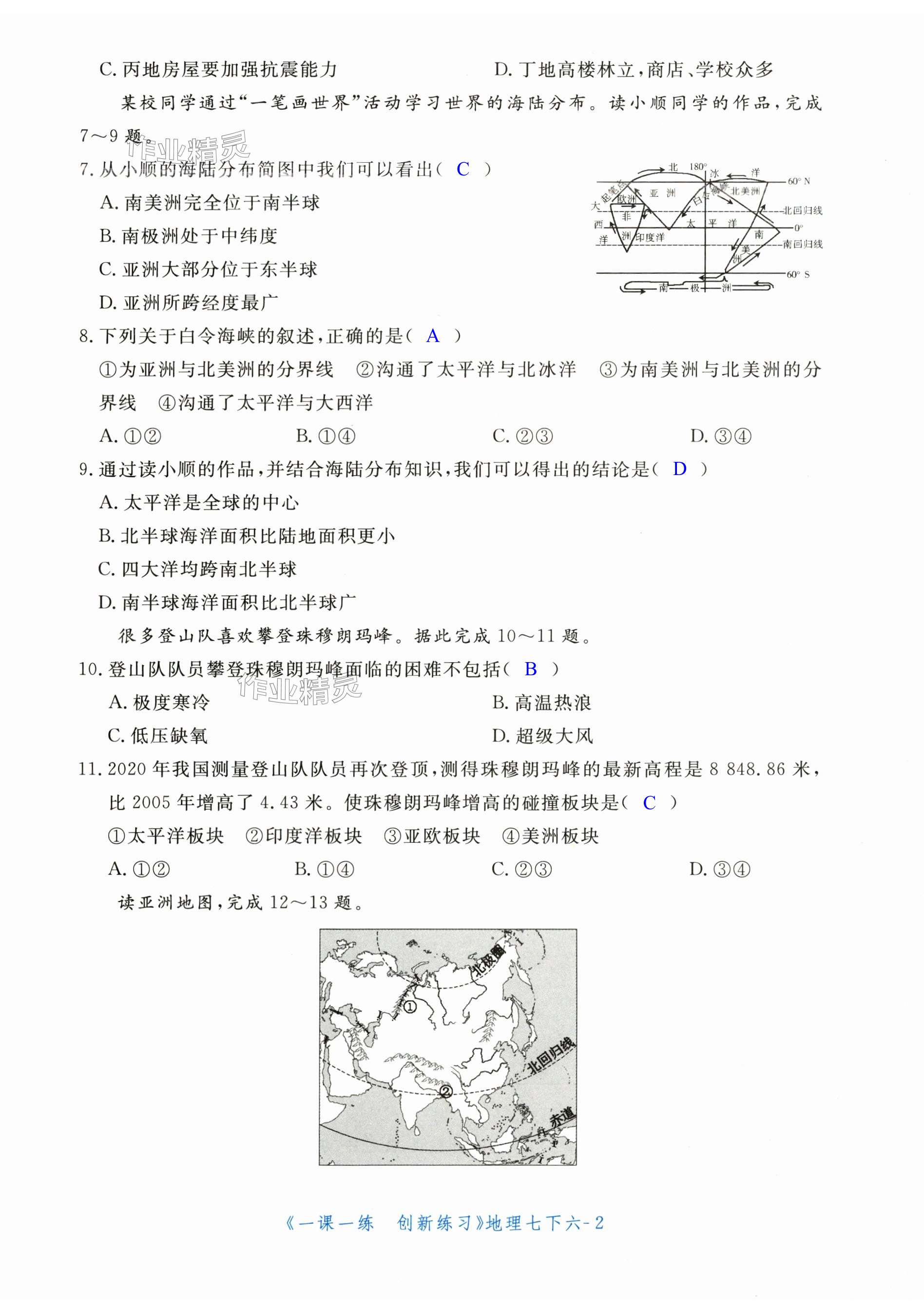 注:目前有些书本章节名称可能整理的还不是很完善,但都是按照顺序排列的,请同学们按照顺序仔细查找。练习册 2024年一课一练创新练习七年级地理下册人教版 答案主要是用来给同学们做完题方便对答案用的,请勿直接抄袭。