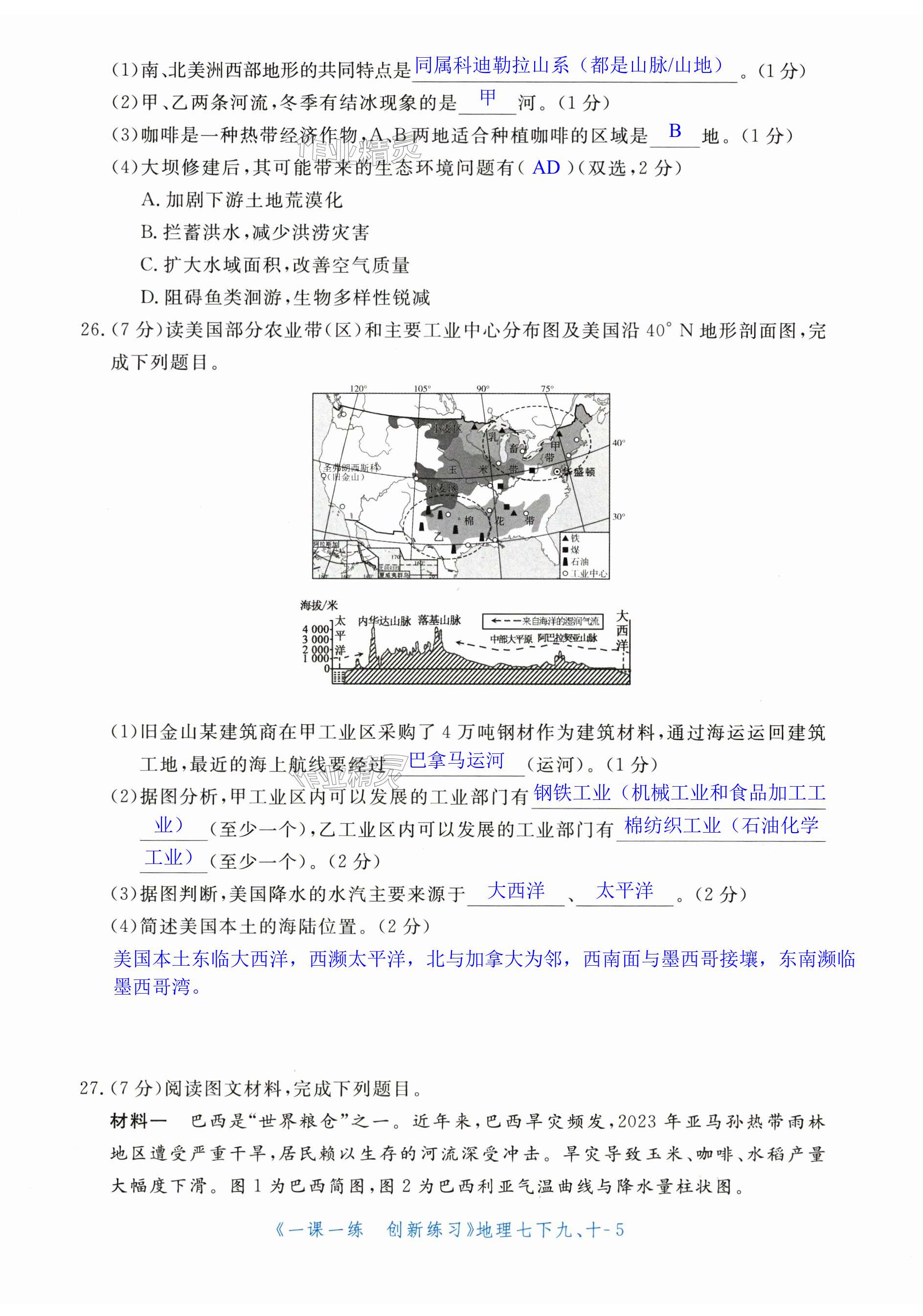 注:目前有些书本章节名称可能整理的还不是很完善,但都是按照顺序排列的,请同学们按照顺序仔细查找。练习册 2024年一课一练创新练习七年级地理下册人教版 答案主要是用来给同学们做完题方便对答案用的,请勿直接抄袭。