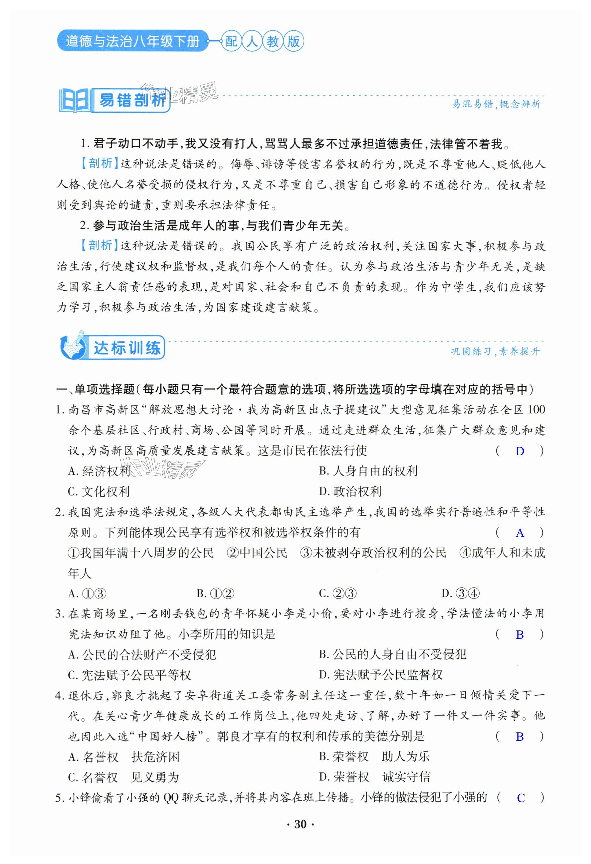 注:目前有些书本章节名称可能整理的还不是很完善,但都是按照顺序排列的,请同学们按照顺序仔细查找。练习册 2024年一课一练创新练习八年级道德与法治下册人教版 答案主要是用来给同学们做完题方便对答案用的,请勿直接抄袭。