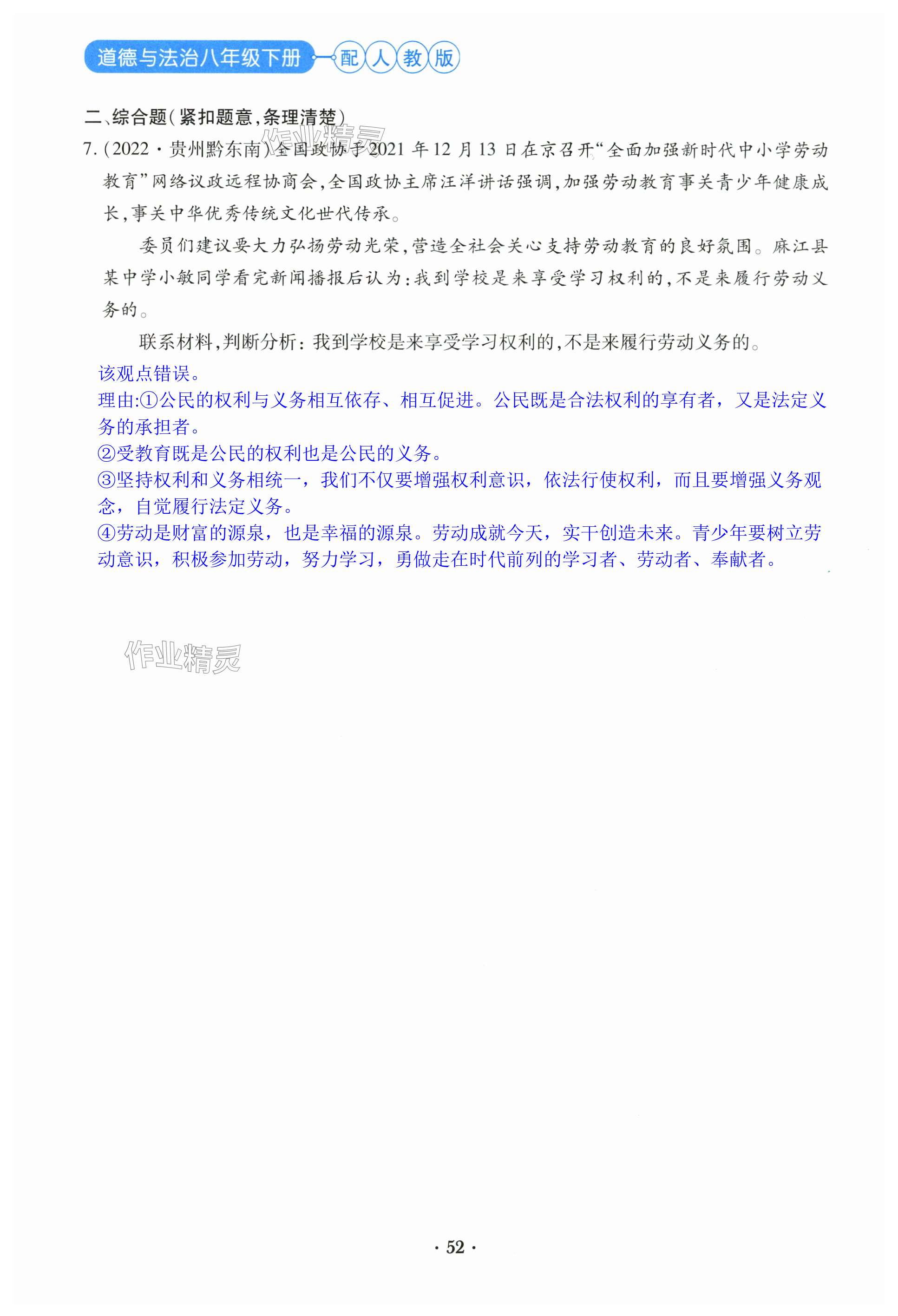 注:目前有些书本章节名称可能整理的还不是很完善,但都是按照顺序排列的,请同学们按照顺序仔细查找。练习册 2024年一课一练创新练习八年级道德与法治下册人教版 答案主要是用来给同学们做完题方便对答案用的,请勿直接抄袭。