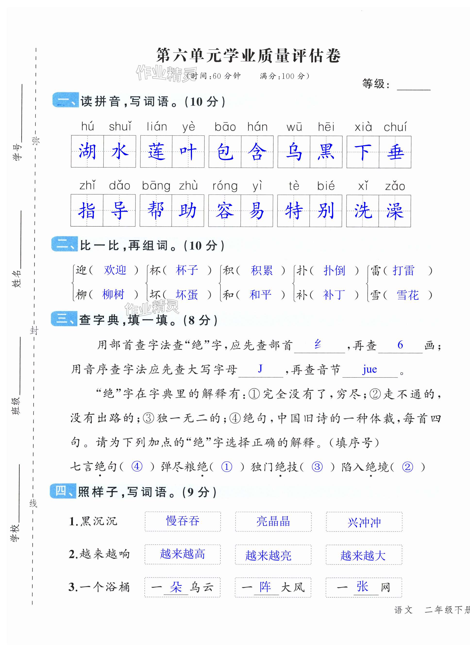 注:目前有些书本章节名称可能整理的还不是很完善,但都是按照顺序排列的,请同学们按照顺序仔细查找。练习册 2024年名师面对面先学后练二年级语文下册人教版 答案主要是用来给同学们做完题方便对答案用的,请勿直接抄袭。