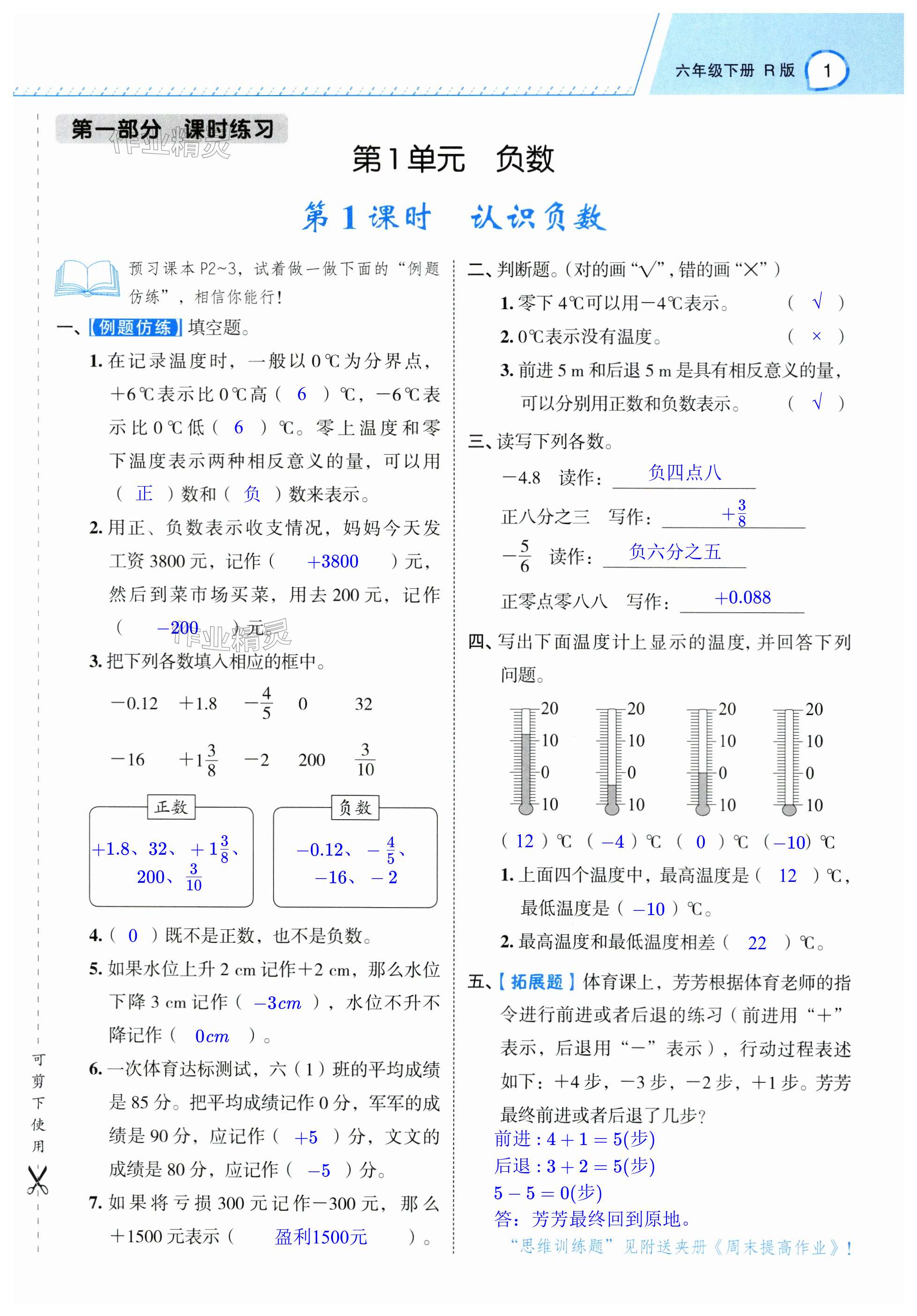 精英家教网> 2024年名师面对面先学后练六年级数学下册人教版 > 参考答案第1页 参考答案