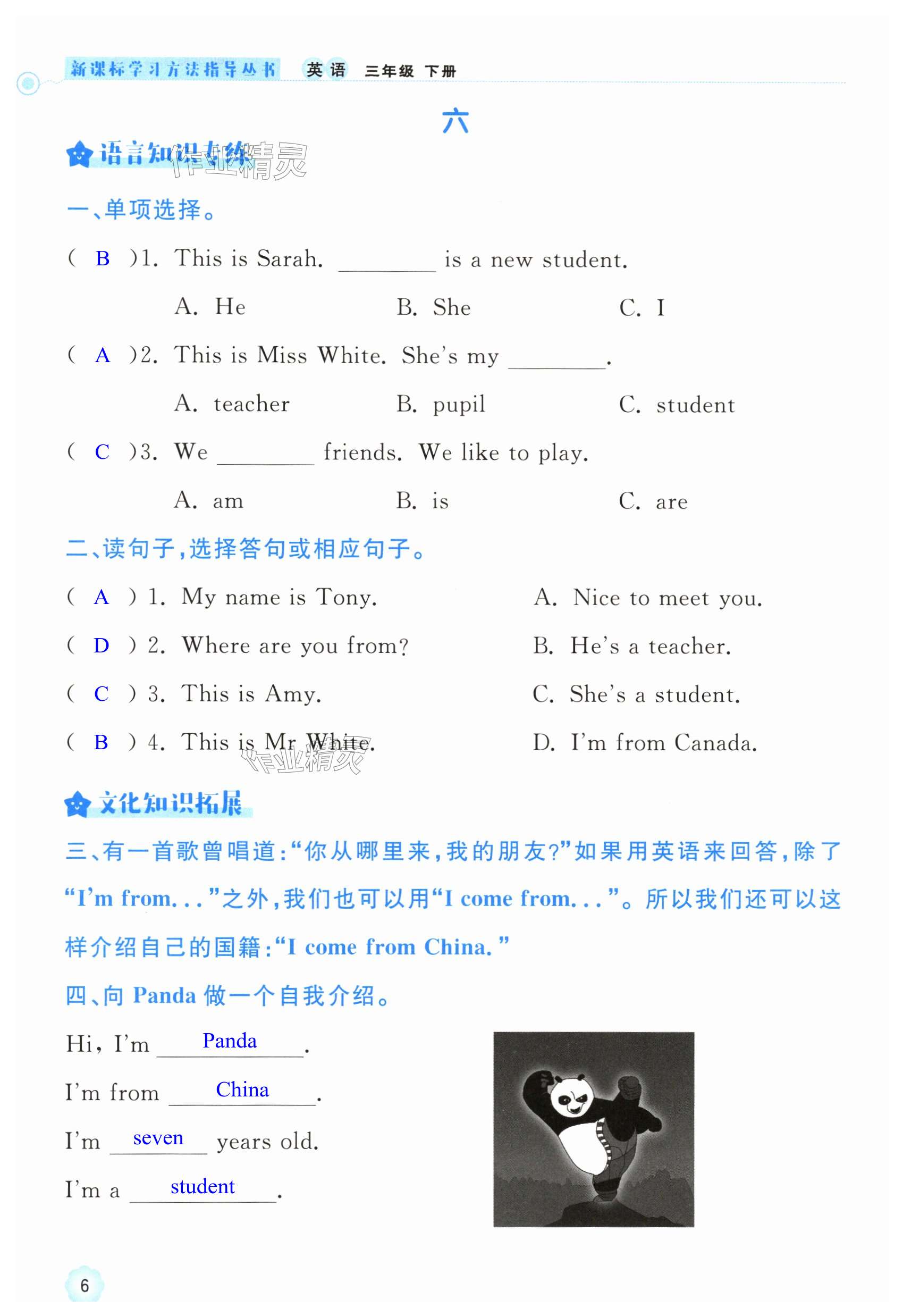 注:目前有些书本章节名称可能整理的还不是很完善,但都是按照顺序排列的,请同学们按照顺序仔细查找。练习册 2024年新课标学习方法指导丛书三年级英语下册人教版 答案主要是用来给同学们做完题方便对答案用的,请勿直接抄袭。