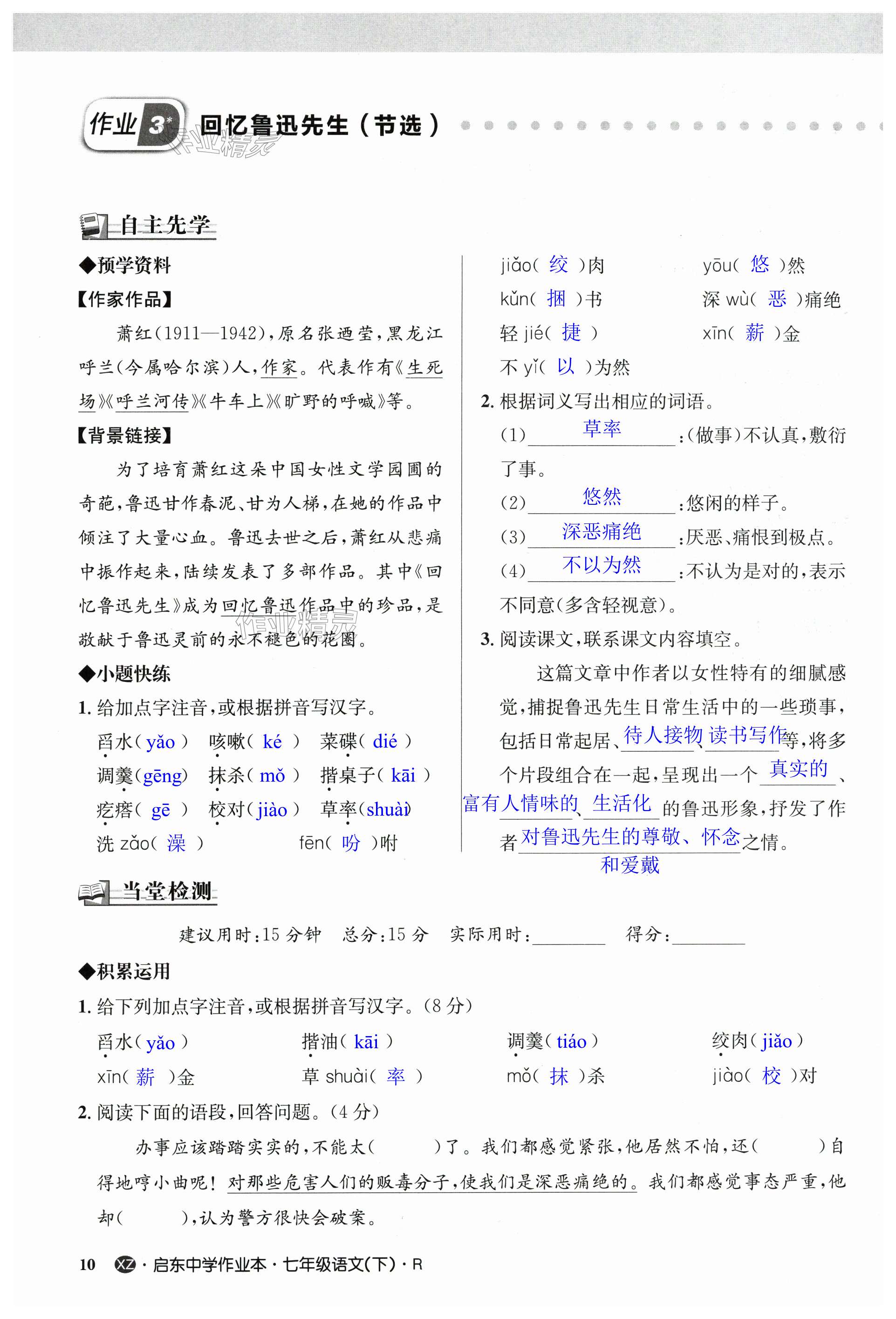 注:目前有些书本章节名称可能整理的还不是很完善,但都是按照顺序排列的,请同学们按照顺序仔细查找。练习册 2024年启东中学作业本七年级语文下册人教版徐州专版 答案主要是用来给同学们做完题方便对答案用的,请勿直接抄袭。