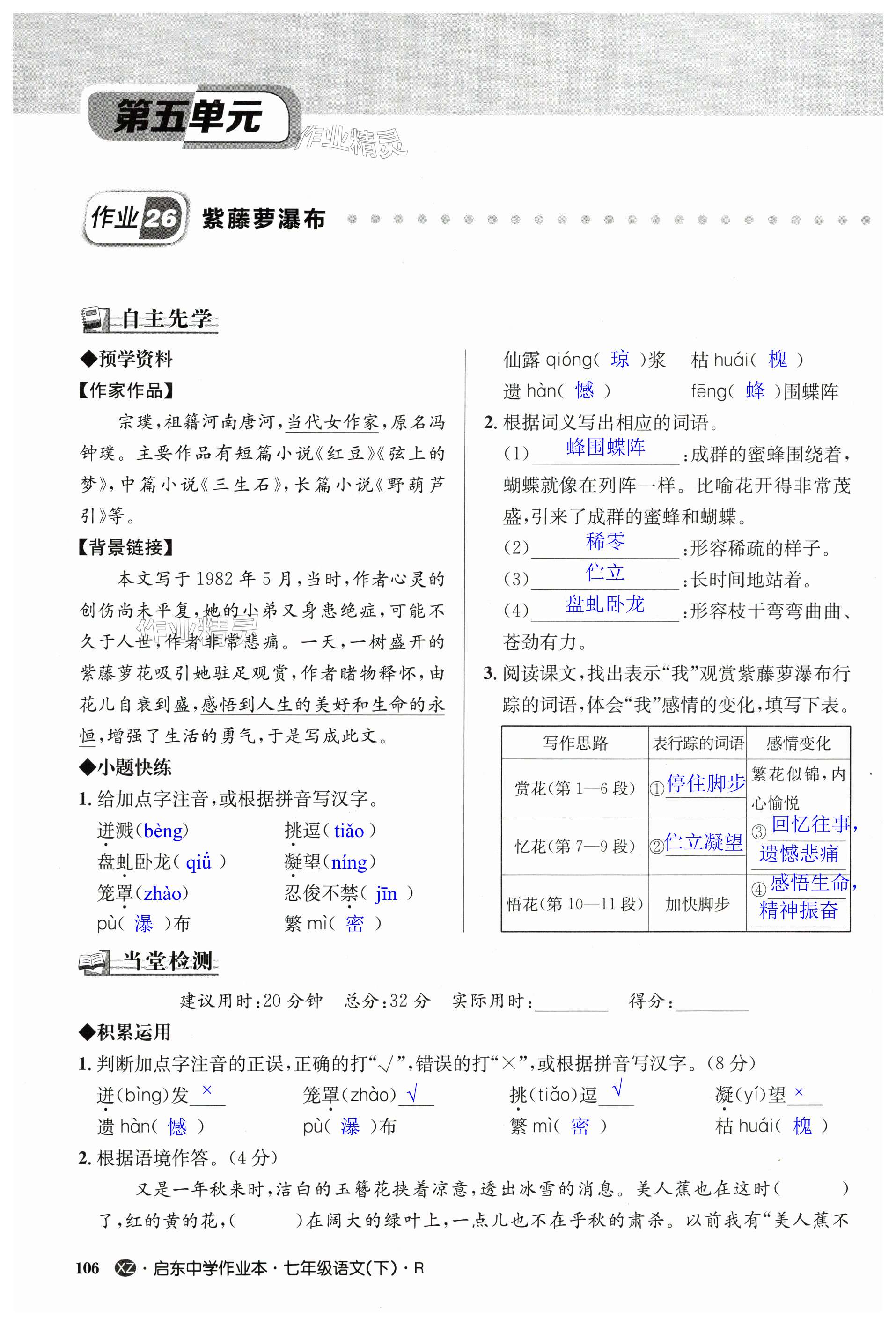 注:目前有些书本章节名称可能整理的还不是很完善,但都是按照顺序排列的,请同学们按照顺序仔细查找。练习册 2024年启东中学作业本七年级语文下册人教版徐州专版 答案主要是用来给同学们做完题方便对答案用的,请勿直接抄袭。