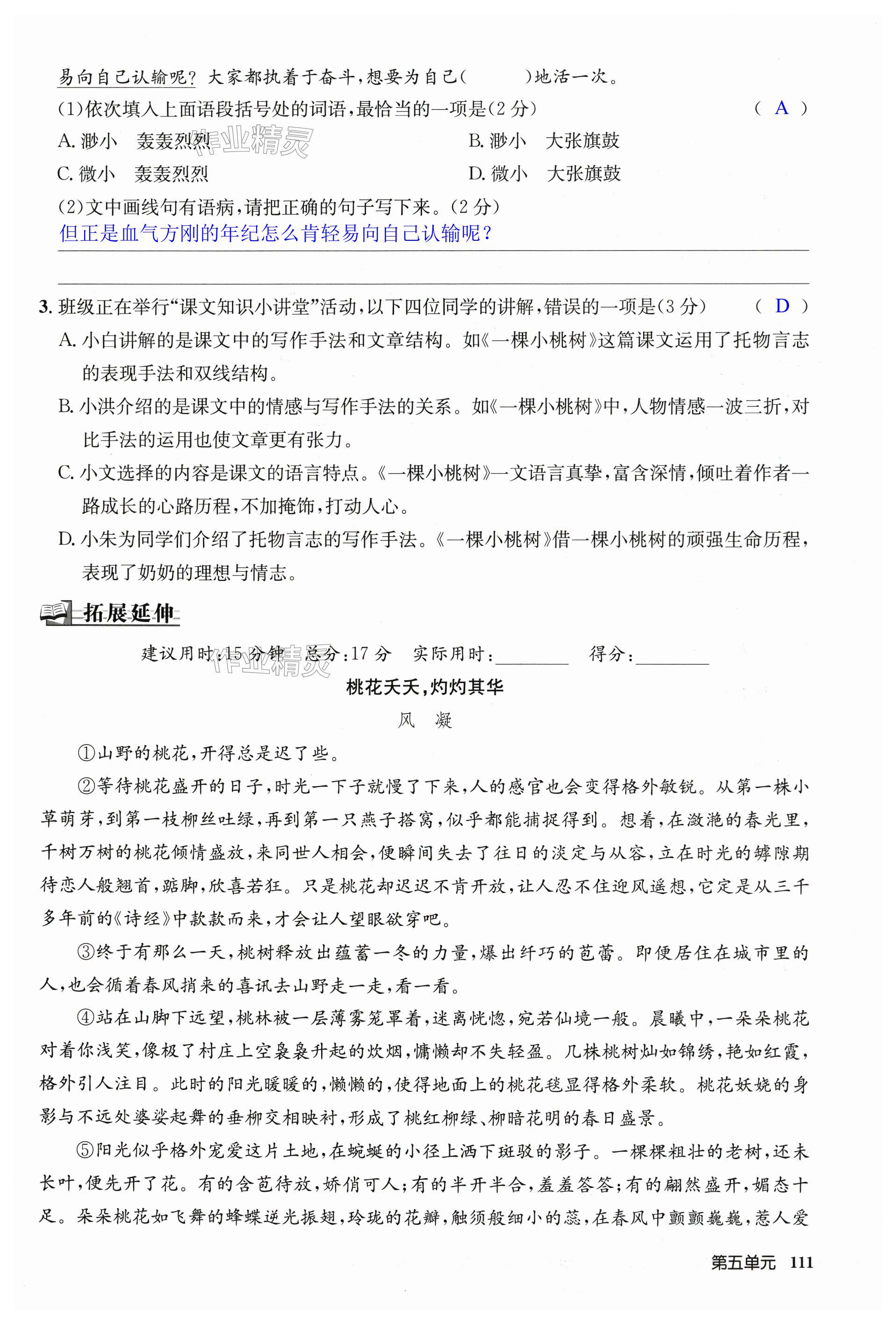 注:目前有些书本章节名称可能整理的还不是很完善,但都是按照顺序排列的,请同学们按照顺序仔细查找。练习册 2024年启东中学作业本七年级语文下册人教版徐州专版 答案主要是用来给同学们做完题方便对答案用的,请勿直接抄袭。
