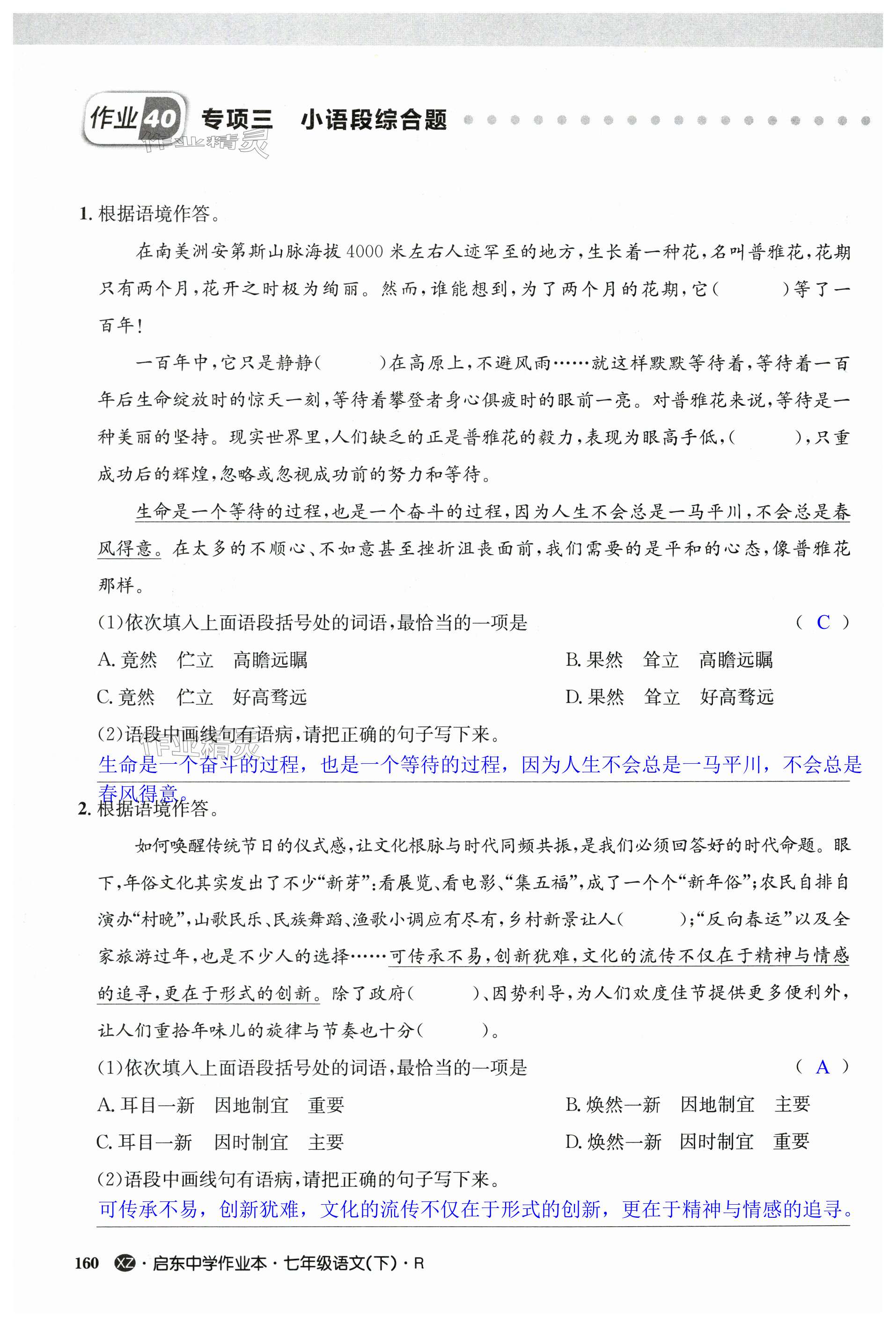 注:目前有些书本章节名称可能整理的还不是很完善,但都是按照顺序排列的,请同学们按照顺序仔细查找。练习册 2024年启东中学作业本七年级语文下册人教版徐州专版 答案主要是用来给同学们做完题方便对答案用的,请勿直接抄袭。
