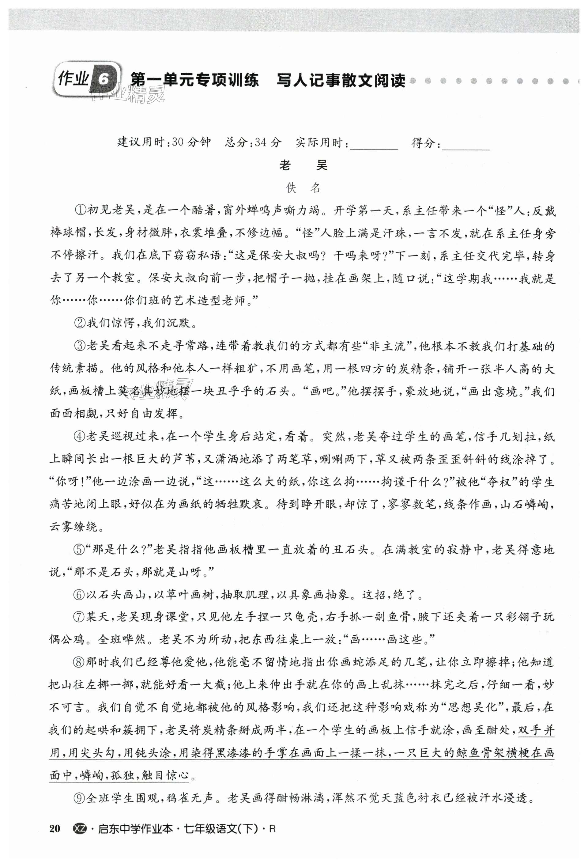 2024年启东中学作业本七年级语文下册人教版徐州专版