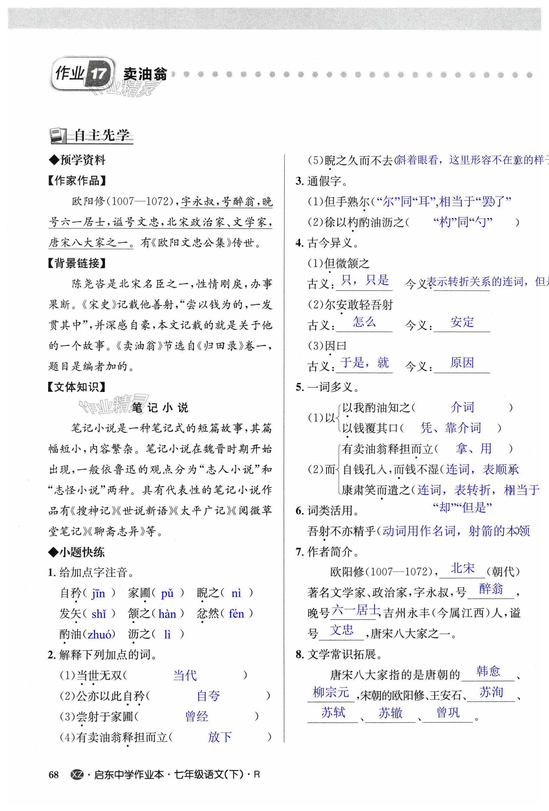 注:目前有些书本章节名称可能整理的还不是很完善,但都是按照顺序排列的,请同学们按照顺序仔细查找。练习册 2024年启东中学作业本七年级语文下册人教版徐州专版 答案主要是用来给同学们做完题方便对答案用的,请勿直接抄袭。