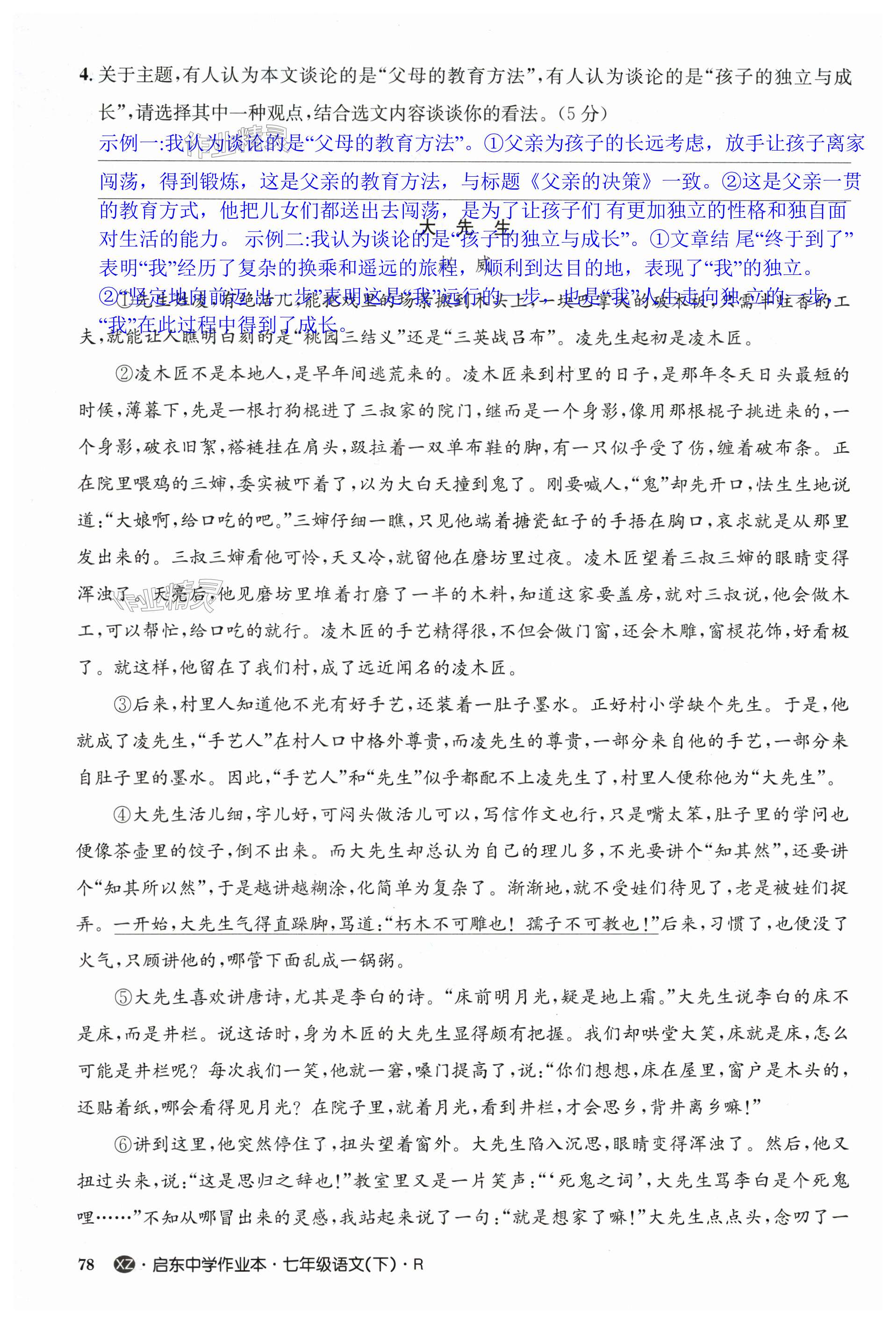 《2024年启东中学作业本七年级语文下册人教版徐州专版》