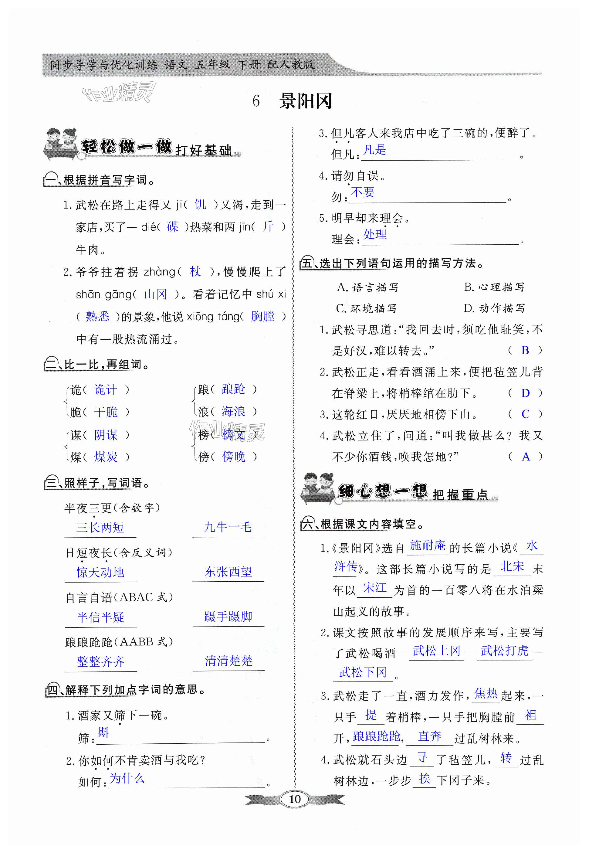 注:目前有些书本章节名称可能整理的还不是很完善,但都是按照顺序排列的,请同学们按照顺序仔细查找。练习册 2024年同步导学与优化训练五年级语文下册人教版 答案主要是用来给同学们做完题方便对答案用的,请勿直接抄袭。