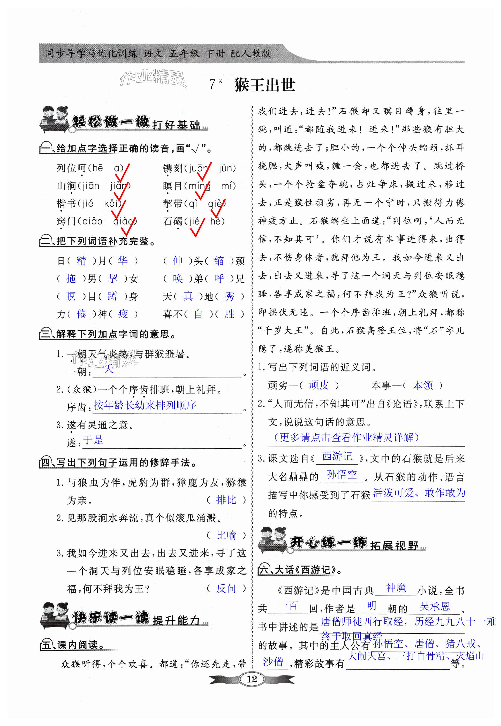 注:目前有些书本章节名称可能整理的还不是很完善,但都是按照顺序排列的,请同学们按照顺序仔细查找。练习册 2024年同步导学与优化训练五年级语文下册人教版 答案主要是用来给同学们做完题方便对答案用的,请勿直接抄袭。