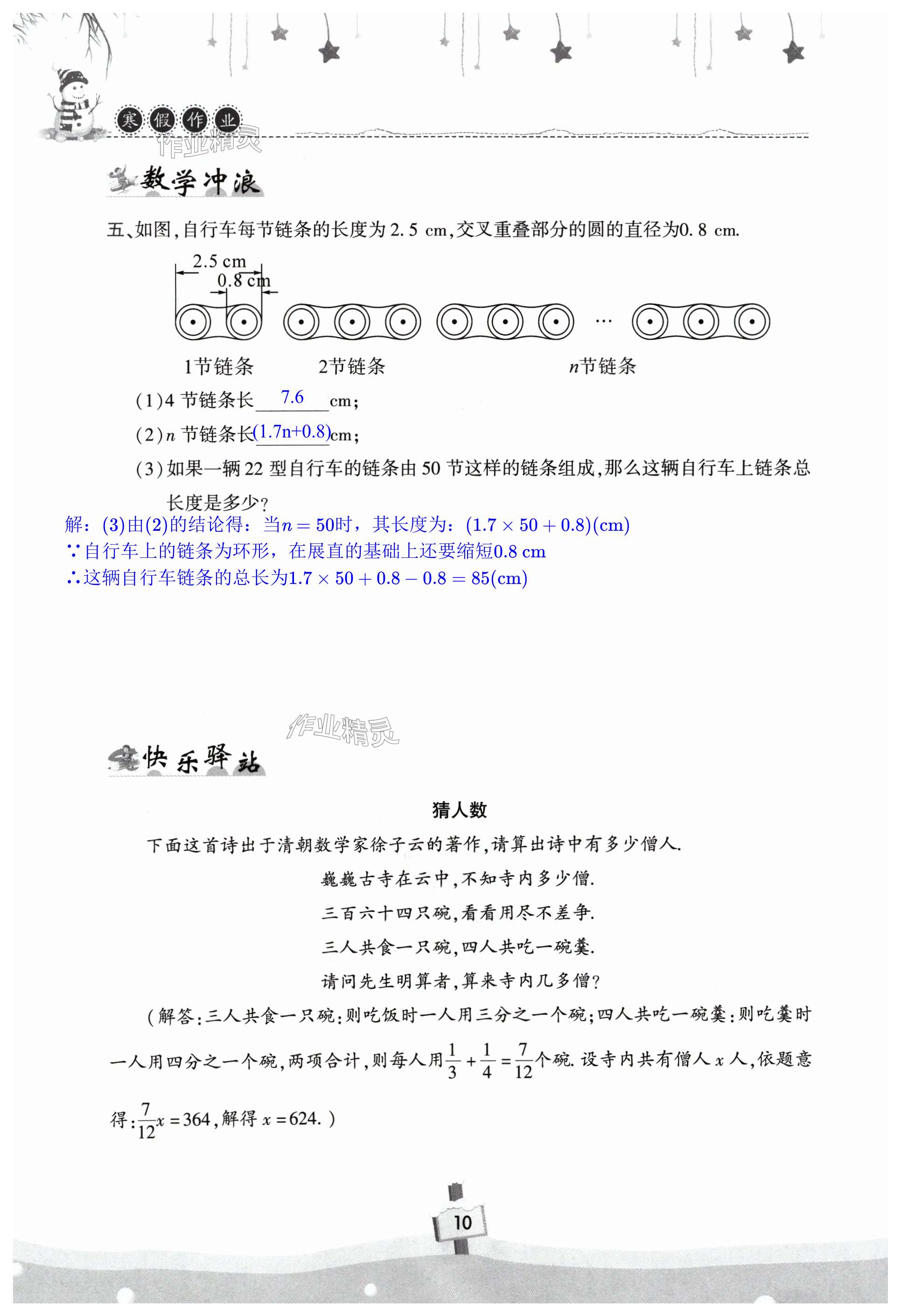 注:目前有些书本章节名称可能整理的还不是很完善,但都是按照顺序排列的,请同学们按照顺序仔细查找。练习册 2024年快乐寒假天天练七年级数学华师大版 答案主要是用来给同学们做完题方便对答案用的,请勿直接抄袭。