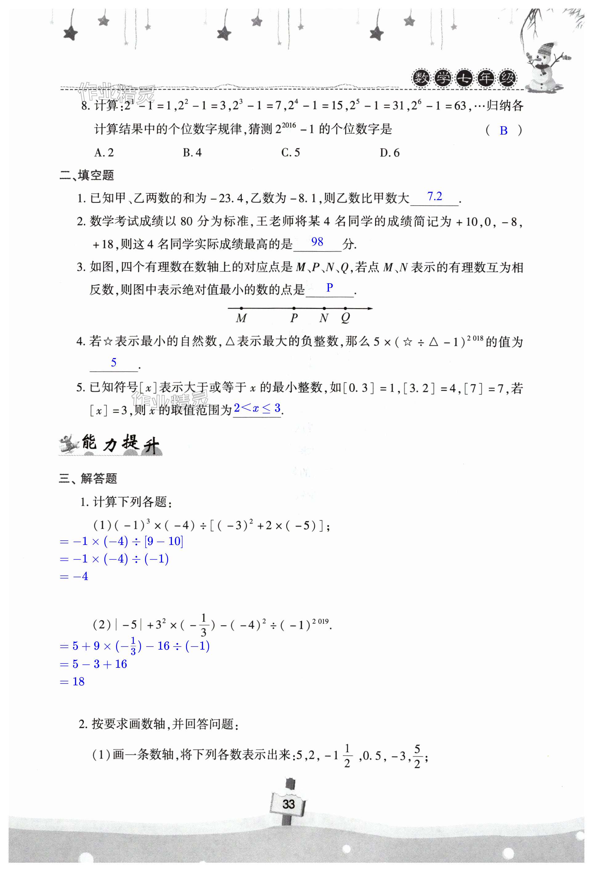 注:目前有些书本章节名称可能整理的还不是很完善,但都是按照顺序排列的,请同学们按照顺序仔细查找。练习册 2024年快乐寒假天天练七年级数学华师大版 答案主要是用来给同学们做完题方便对答案用的,请勿直接抄袭。