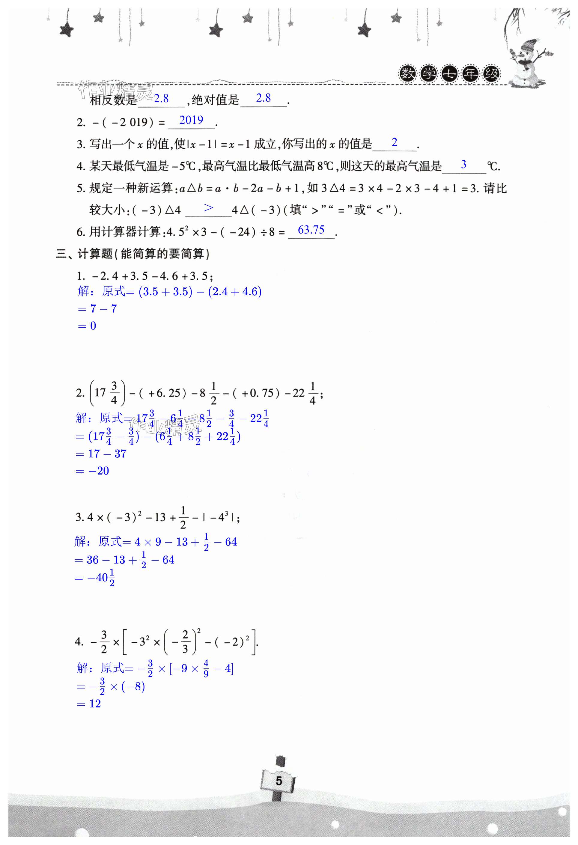 注:目前有些书本章节名称可能整理的还不是很完善,但都是按照顺序排列的,请同学们按照顺序仔细查找。练习册 2024年快乐寒假天天练七年级数学华师大版 答案主要是用来给同学们做完题方便对答案用的,请勿直接抄袭。